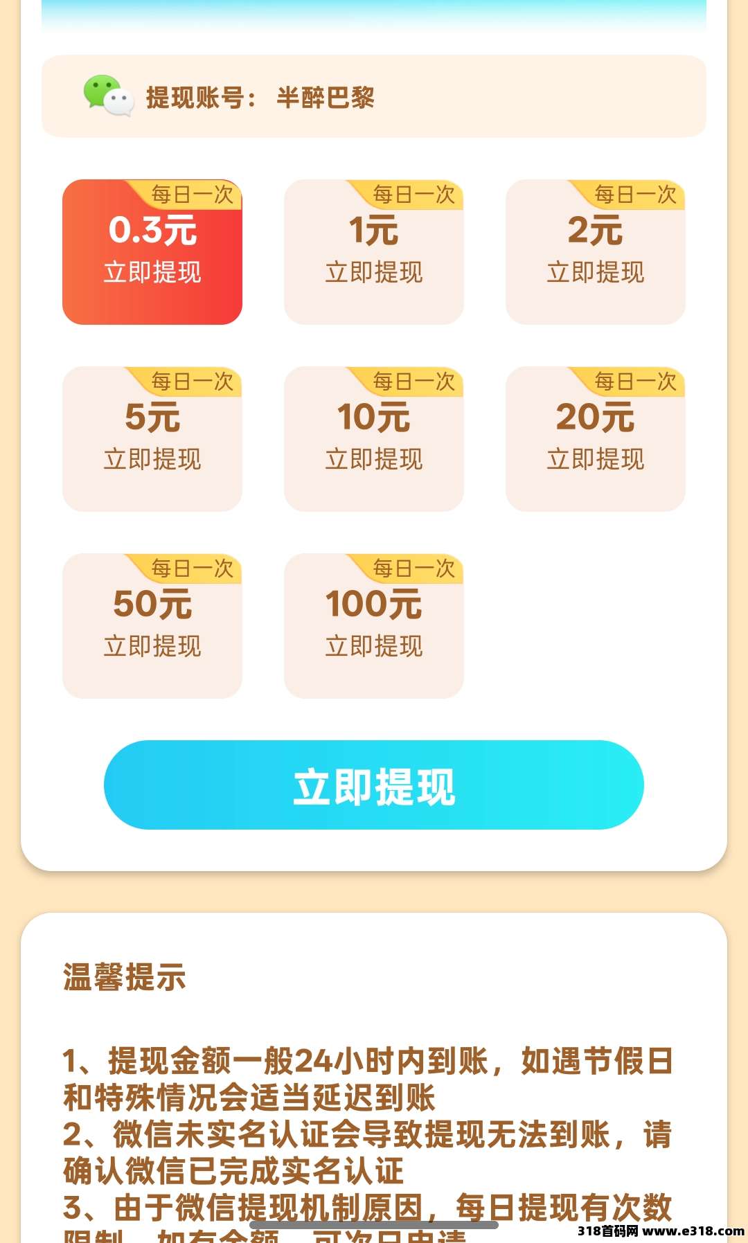 满1米提现,无门槛提现