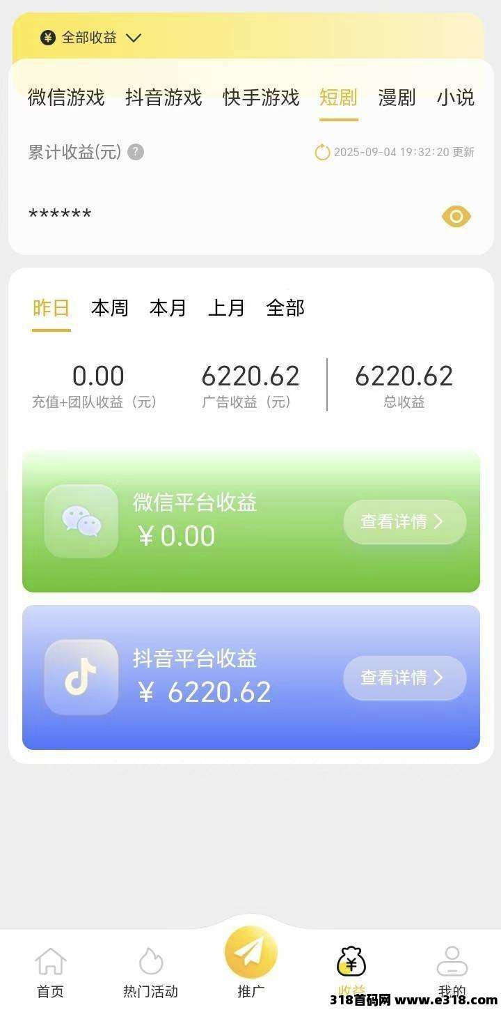 无论你是学生党、上班族还是宝妈,这里都有适合你的掘金板块。小游戏推广、短剧变现、小说分销、漫剧推广,四大板块多重收益,日活超10亿流量等你来转化。