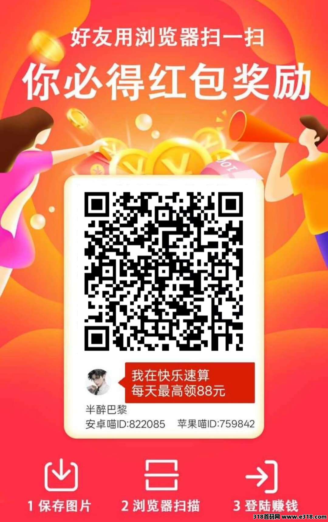 首码快乐速算,纯零撸看广告,不养机收益高,单机每天10-30+,免费送不养机玩法教程!