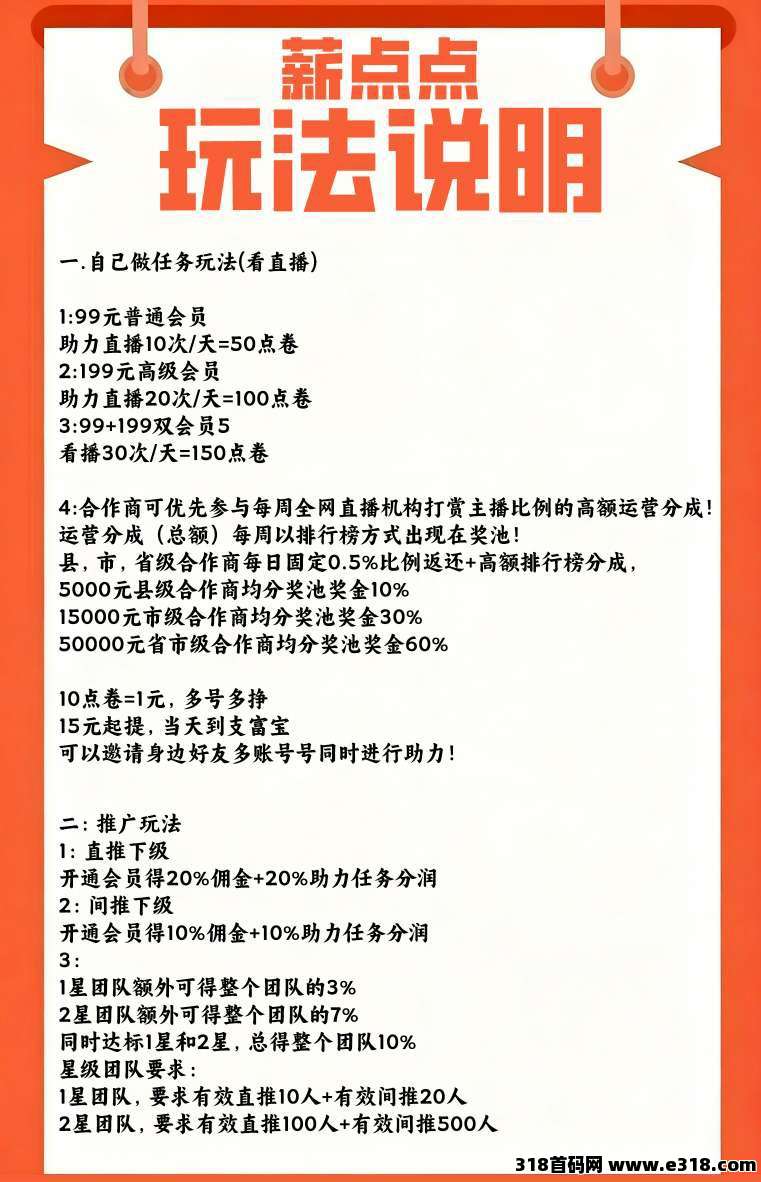 薪点点零撸,看客帮模式,保底收益高,团队模式