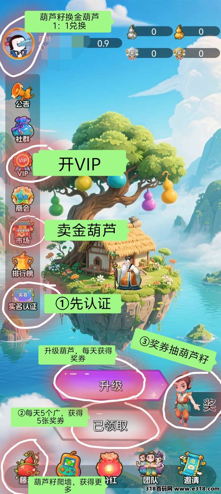 2. 兑换:葫芦籽1:1换金葫芦(收10%手续费),平台2元/个回收,后续可能涨。