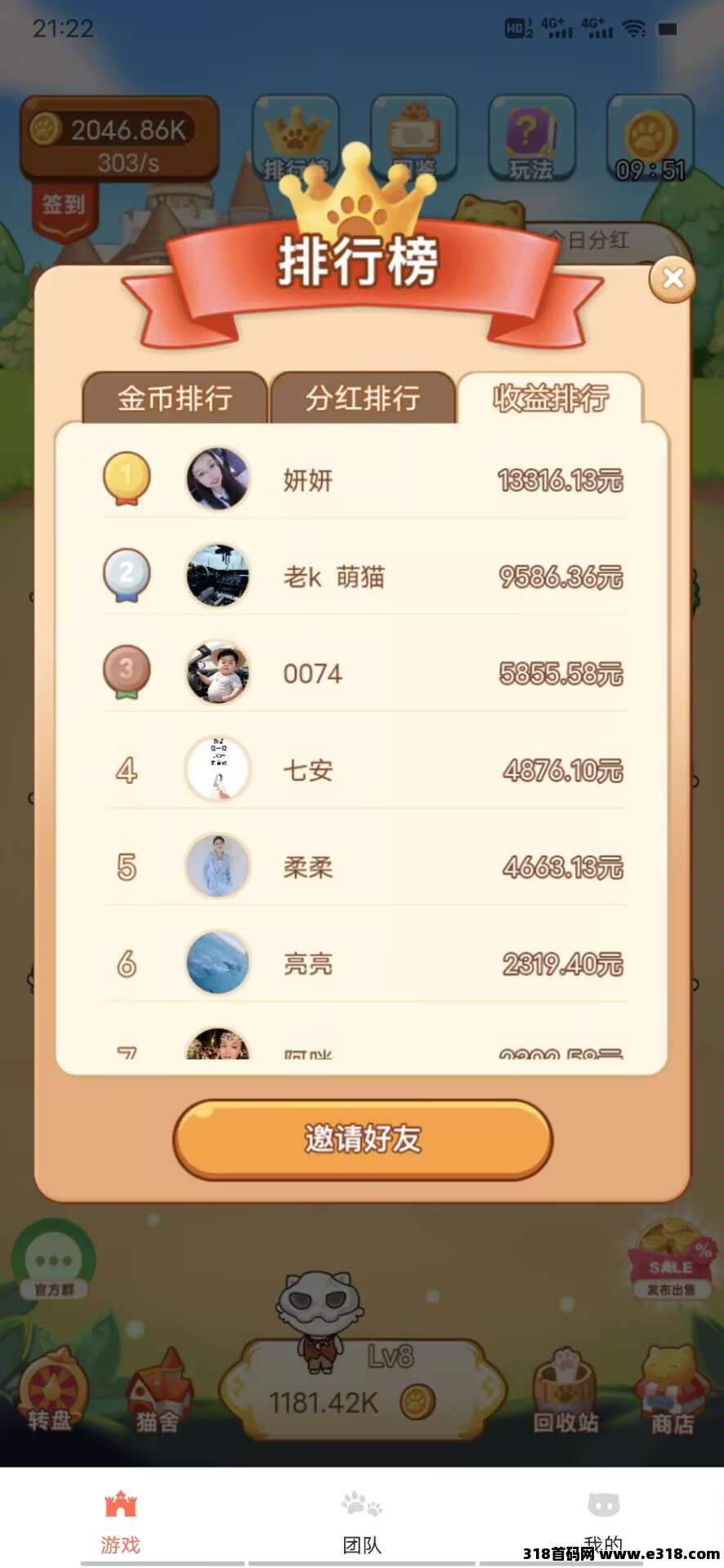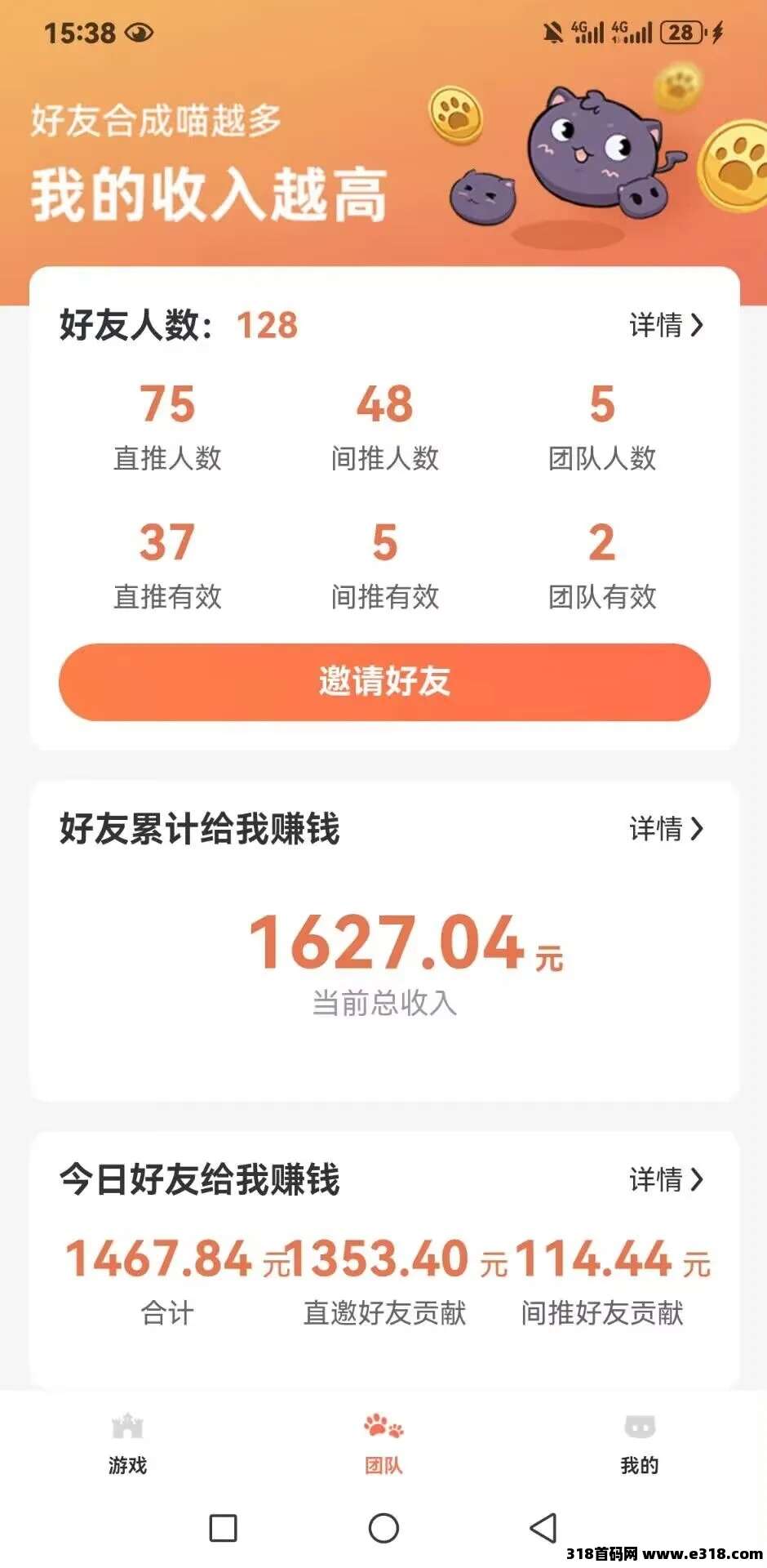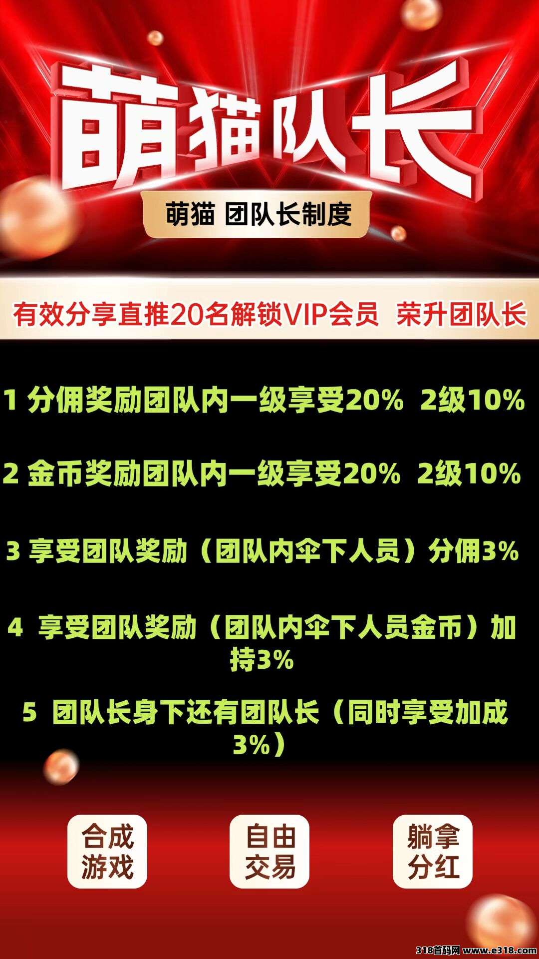 ⑤累计邀请20人 成为萌猫团队长 (享受伞下所有人 金币加成 解锁提成 广告**)持有加成