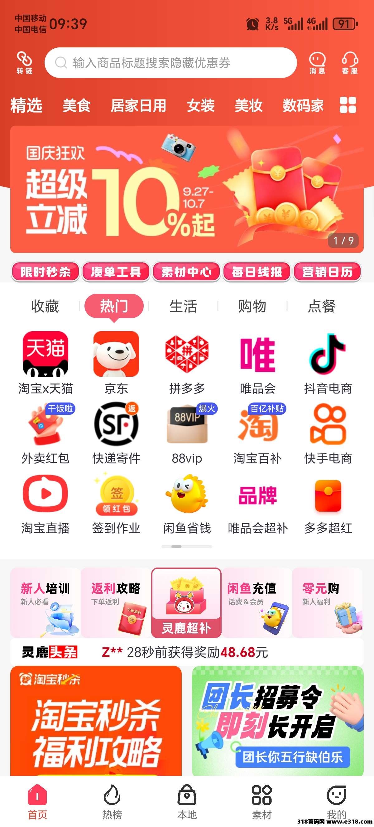 灵鹿宝盒返利优惠几乎涵盖全网吃喝玩乐衣食住行,包括淘宝、京东、拼多多、唯品会、抖音、快手、饿了么、美团、打车、打折加油、5折肯德基、麦当劳、影视会员等等全都有优惠!