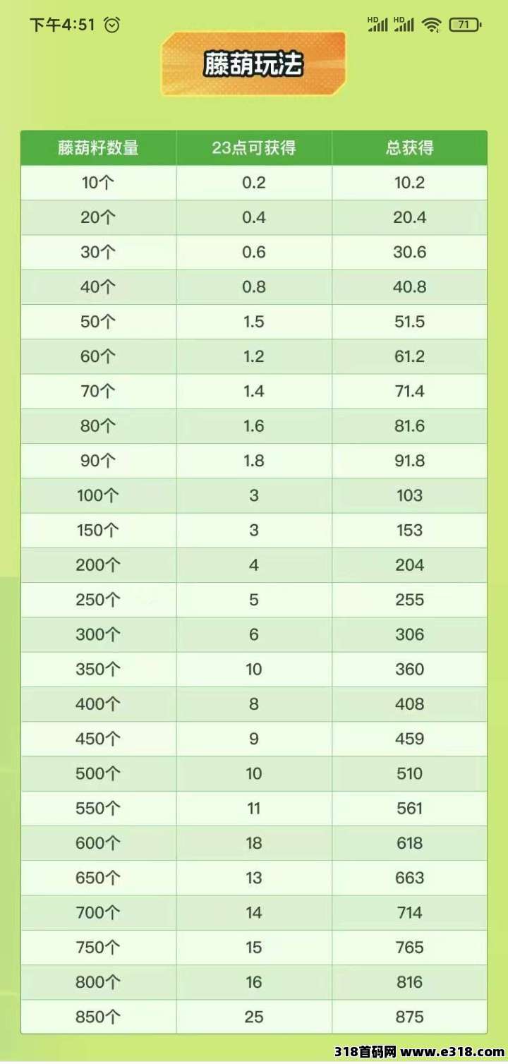 用户只需看5个广告,便能获得5张初级券,抽取1-50枚葫芦籽,葫芦籽可按1:1的比例兑换为金葫芦,平台以2圆/个进行回收金葫芦,整体玩法轻松,适合想要边娱乐边增收的用户。