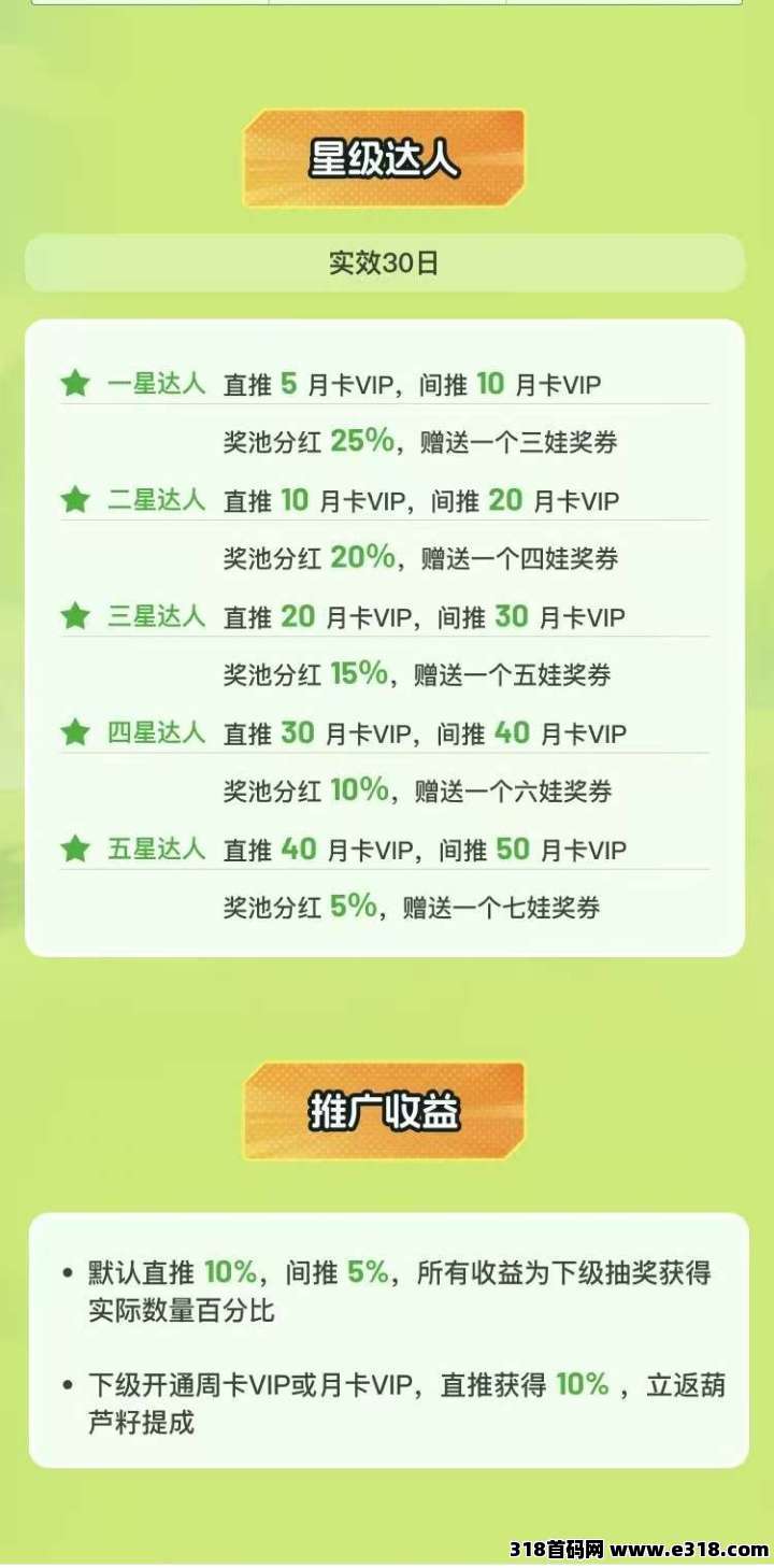 葫娃兄弟推广奖励十分可观,没有天花板,直还有藤葫质押玩法,增加游戏趣味以及收入,快来试试吧。