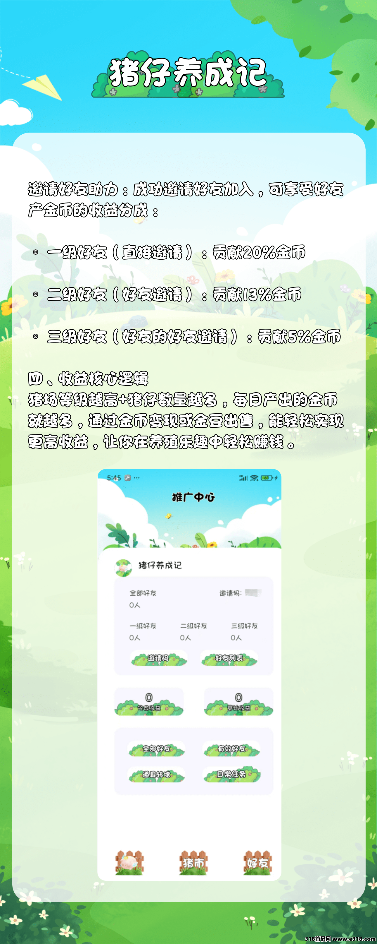 猪仔养成记首码,简单授权无广告每日得1个金币,金币1米1个,满10个可直接提米,大家赶紧注册下载。