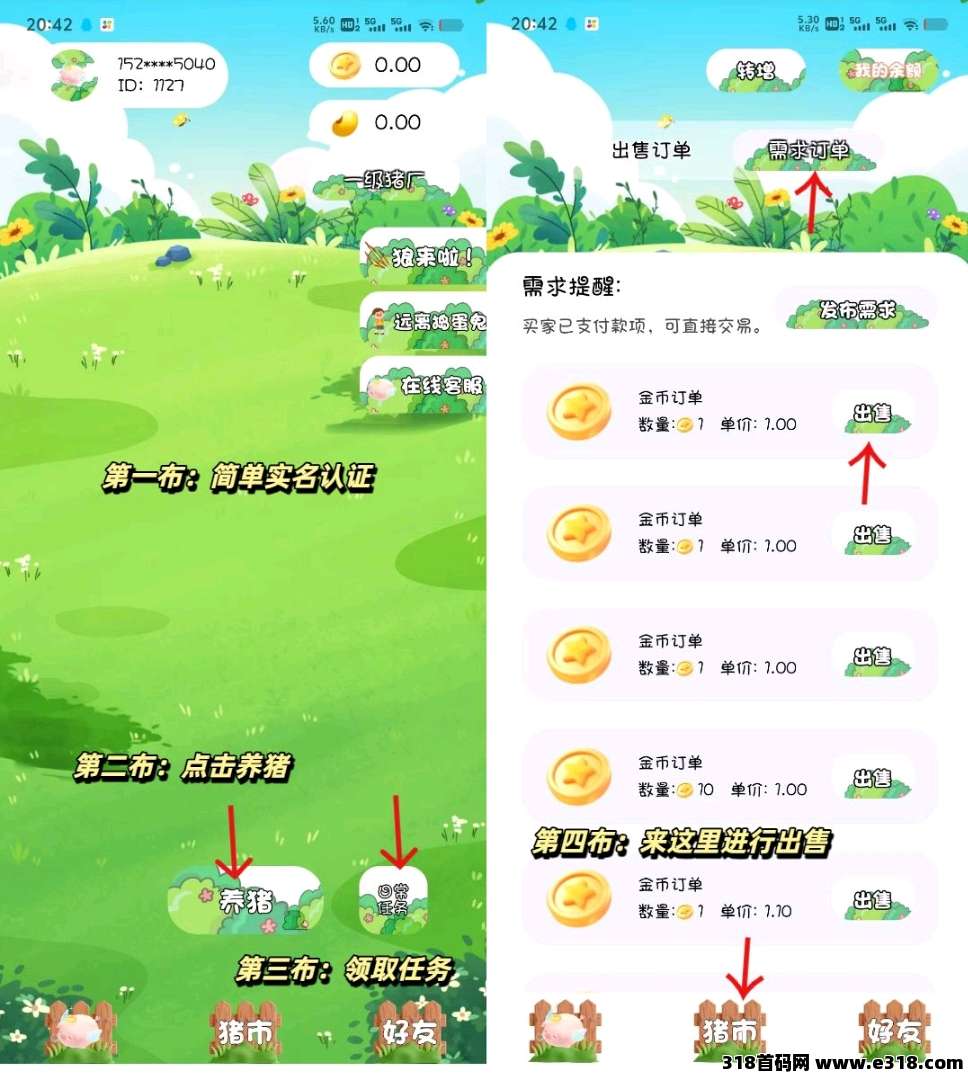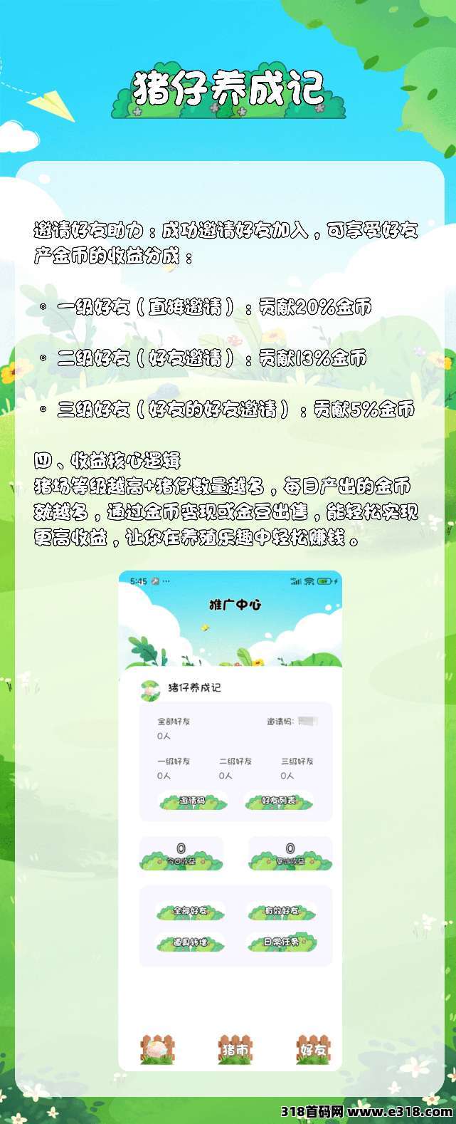 猪仔养成记首码,零撸褂机每天1米。保底收益高,团队模式,