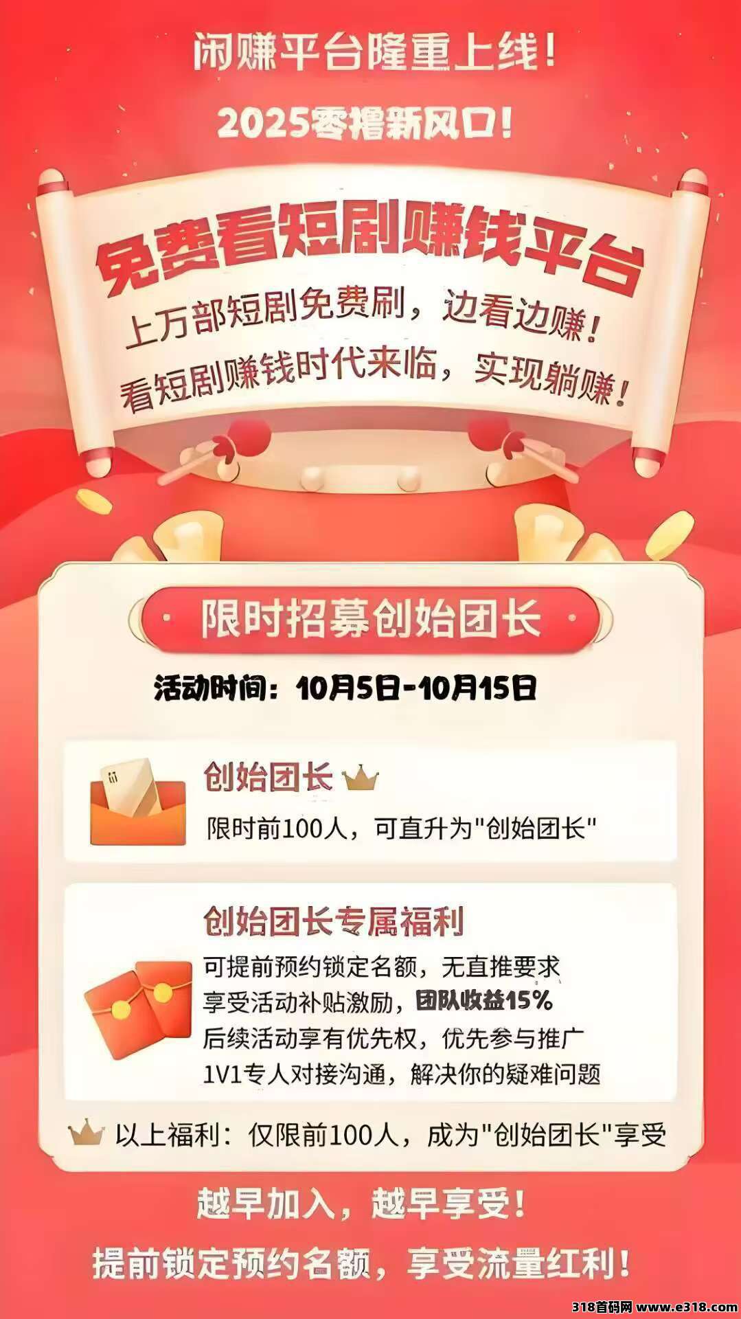 闲赚首码,零撸广告模式,有保底玩法, 不看手机权重,邀请日入百米。满0.3元即可提现,当天到账。浏览器扫码,注册闲赚,下载安装登入后,直接开始做任务,在首页,点击观看,看7个视频即可得0.5元现金。如果遇到问题,可以在首页右上角加群问客服。提现0.3元起,基本当天到账,项目保底不取消之前都可以一直玩。
