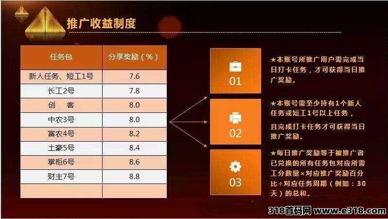 3.不推广只**,用钱去赚钱: 通过**,用资金赚取工分,适合有资金但不想参与推广的用户。