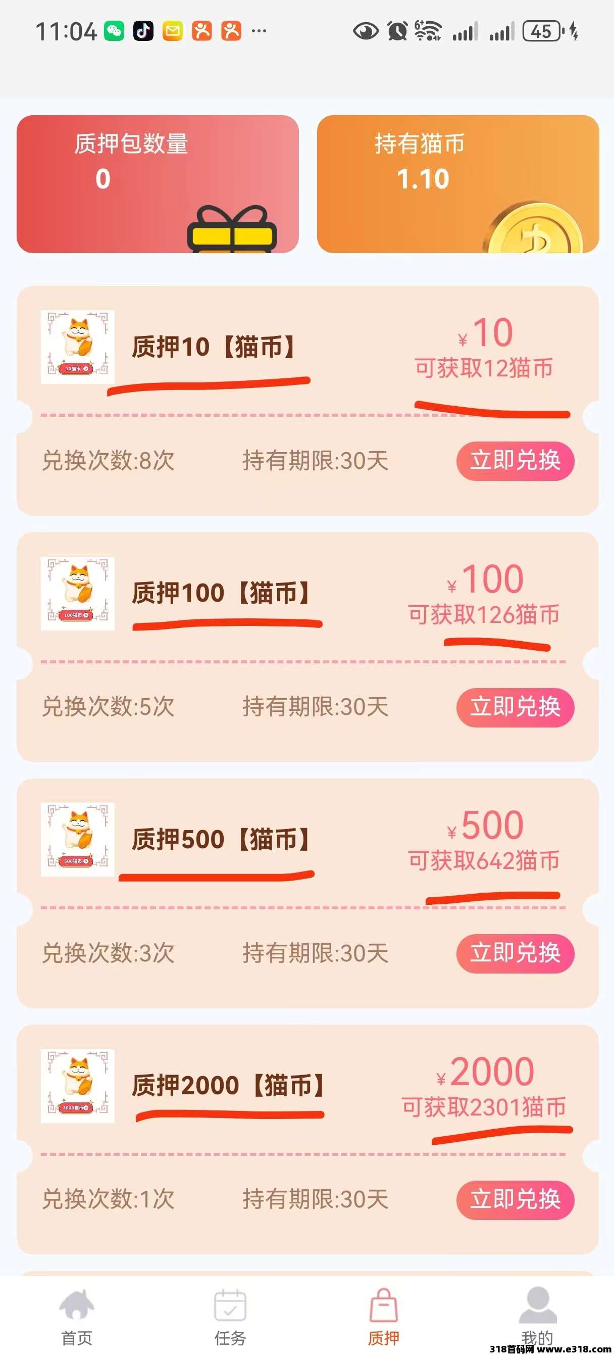 任务每天获得1个,最少5.5个互转,市场无限收猫b