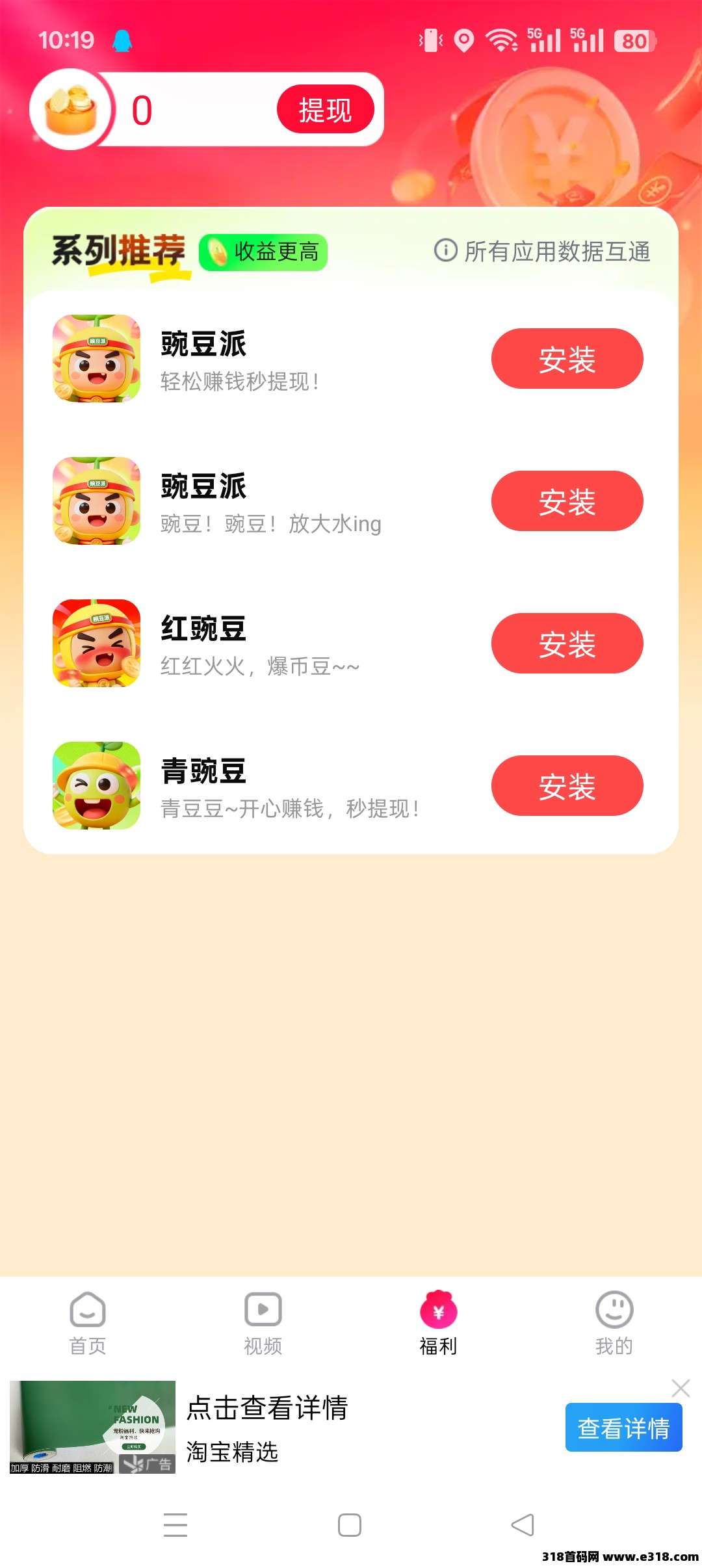 豌豆派,零撸广告赚,安卓苹果双端 ,不养机保底收益高,单机每天10-50+