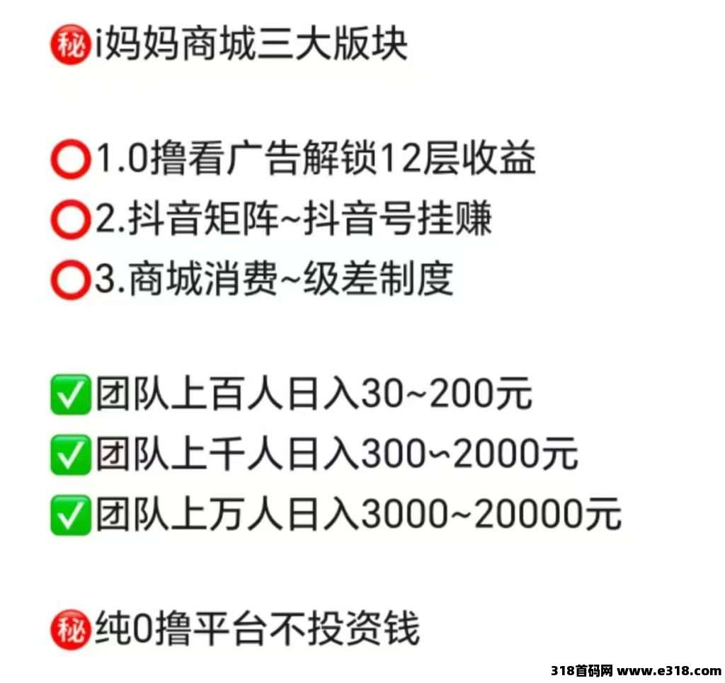 平台几大盈利板块会同时上线,11月上线。三三复制自动滑落,一个点位可给你滑落到80万人,广告收入,抖音矩阵收入,商城收入等等。