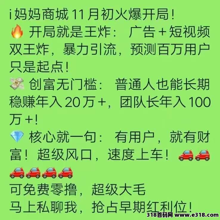 | 免责声明:合作之前建议签订合同,318首码网作为信息共享平台无法对信息的真实性及准确性做出判断,不承担任何财产损失和法律责任,若您不同意该提示,请关闭网页且不要在本站拓展任何合作,否则造成的任何损失由您个人承担。 | |