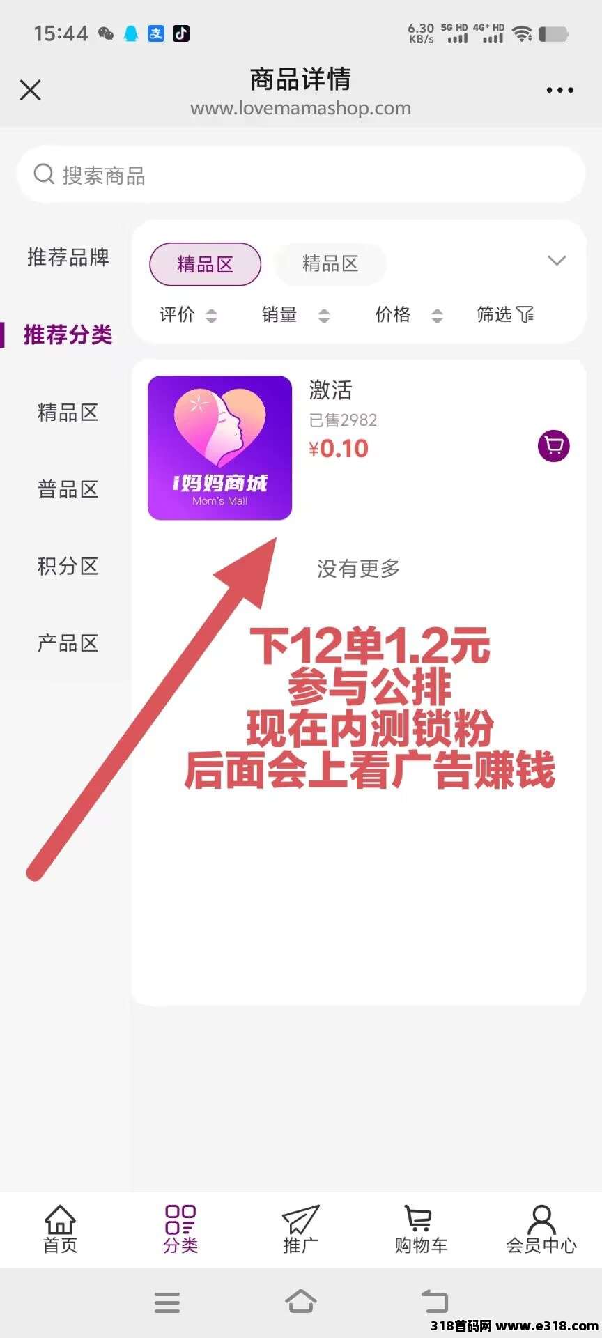 微信扫码,登陆,首页0.1的产品,一次性直接12单,支付1.2元就激活了会员!