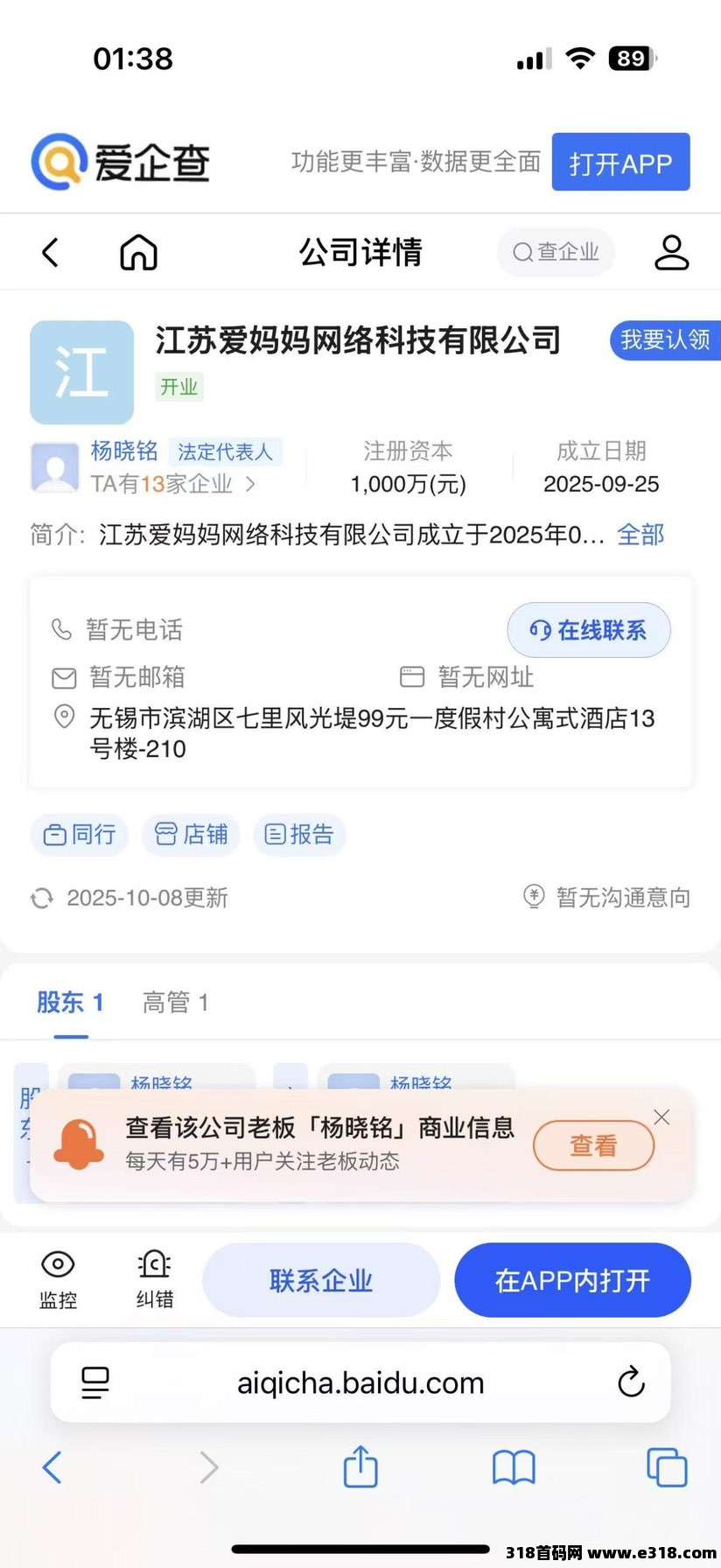 | 免责声明:合作之前建议签订合同,318首码网作为信息共享平台无法对信息的真实性及准确性做出判断,不承担任何财产损失和法律责任,若您不同意该提示,请关闭网页且不要在本站拓展任何合作,否则造成的任何损失由您个人承担。 | |