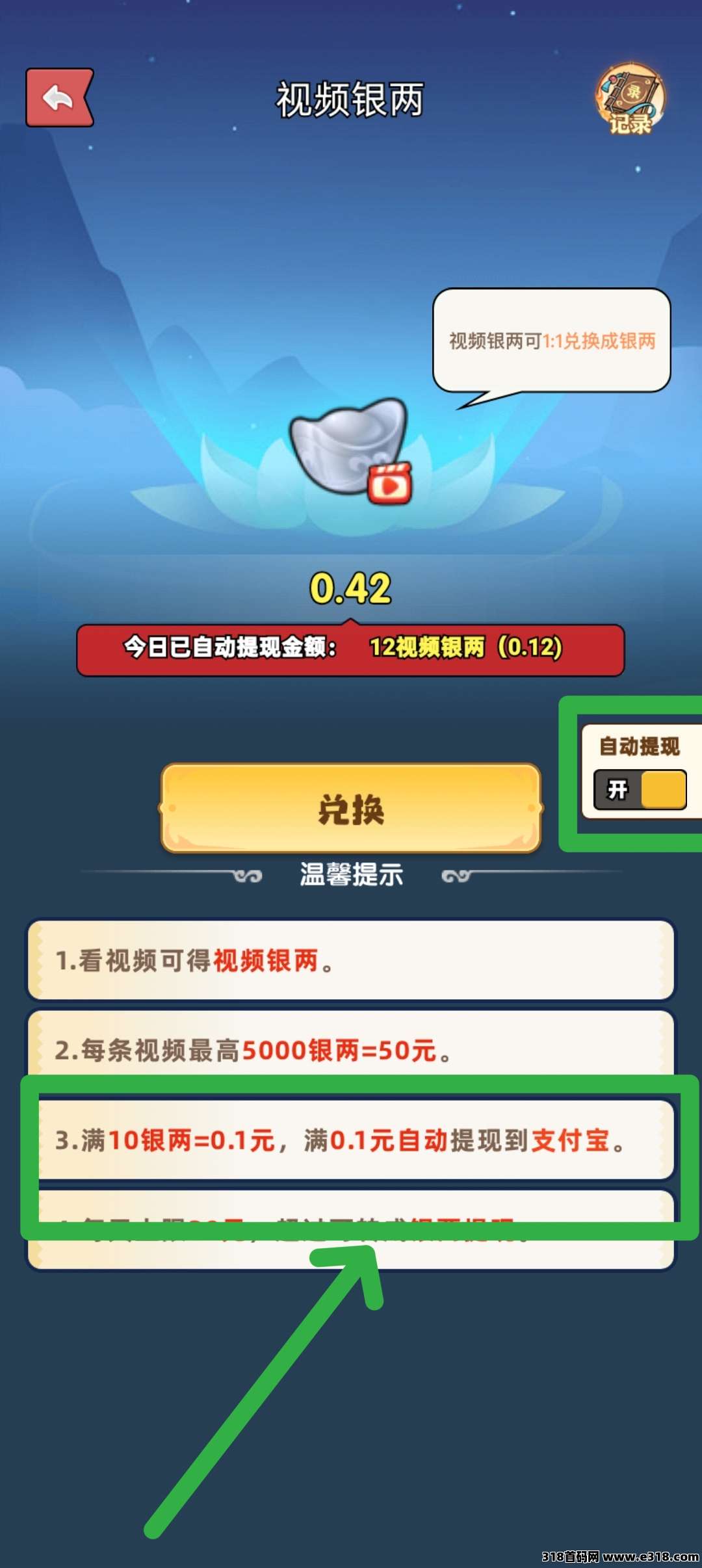 10月 15日上线的仙侠时代,每看一条广告必得银两和钻石,每满 10银两以上,支府宝立马到 账,无须手动提 现,
