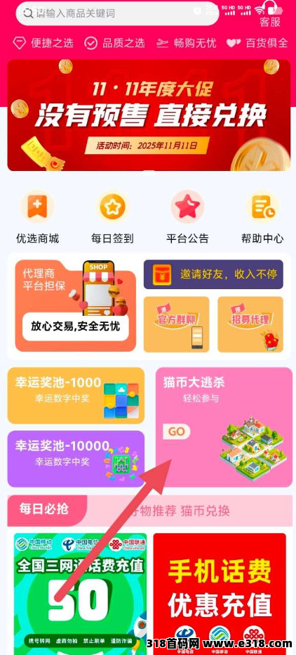 首码招财猫上线。全网预热对接团队长 零撸新玩法 每天看广告签到释放招财币