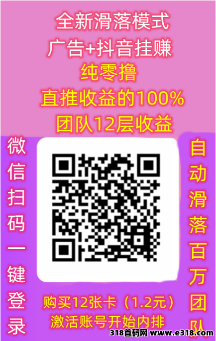 看广告0撸版块:看12个广告解锁12层约80万人的收益,造血功能源源不断
