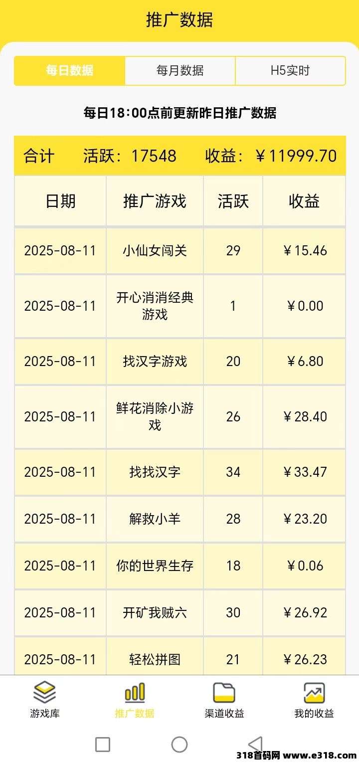 友梦联盟是通过小程序游戏里面的内置广告,通过看广告获得超高收益,平均一个广告在1.5-几米不等,通过广告类型的不同,每条广告的收益也不同,同时可以选择那种分成45及以上的小游戏,这样里面的广告收益也更高,直接扫登录即可。