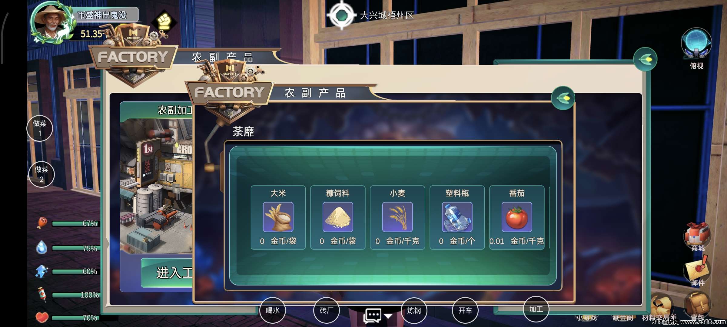 然后发现商机:倒卖物资、回收作物、开设工厂、经营商铺……