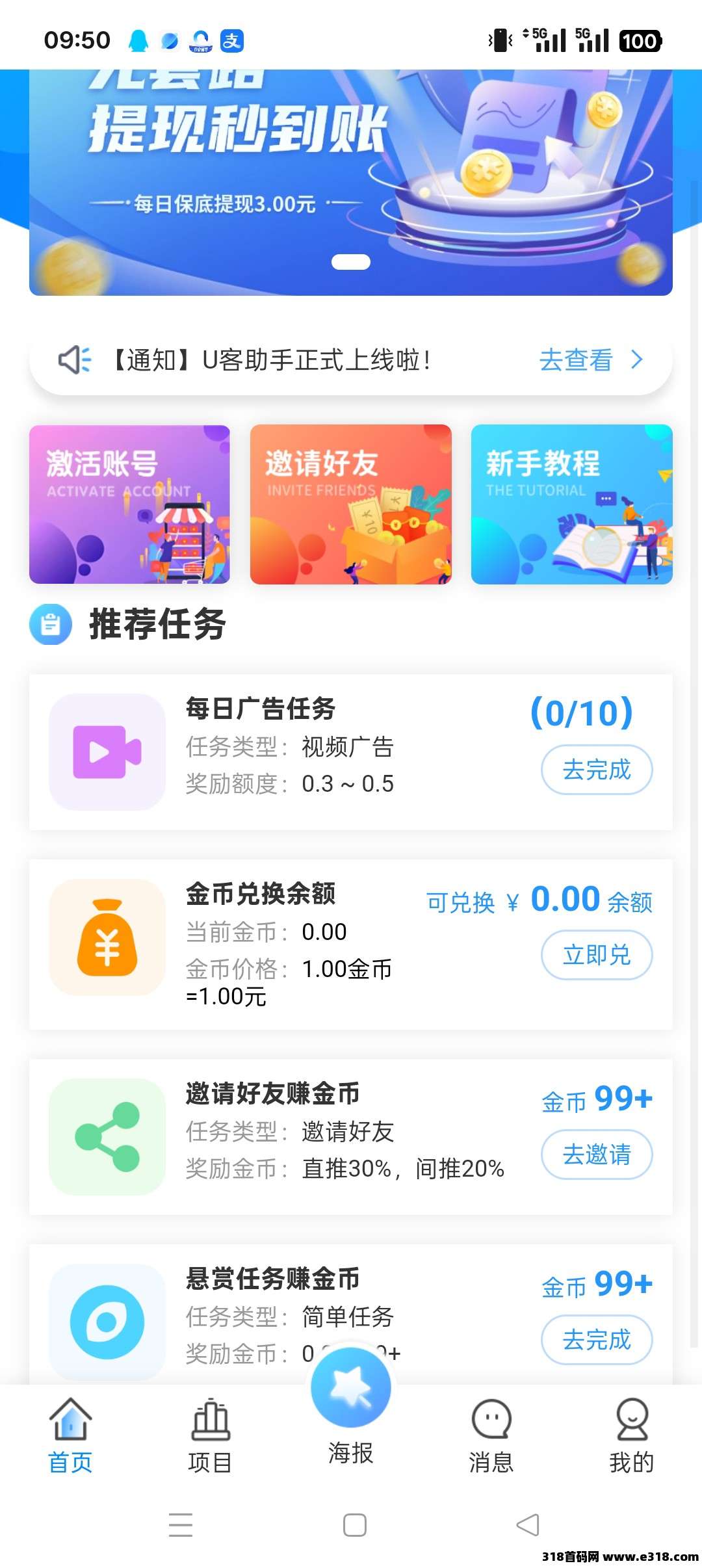 U客助手零撸,广告赚,保底收益高,团队模式,邀请日入百米。