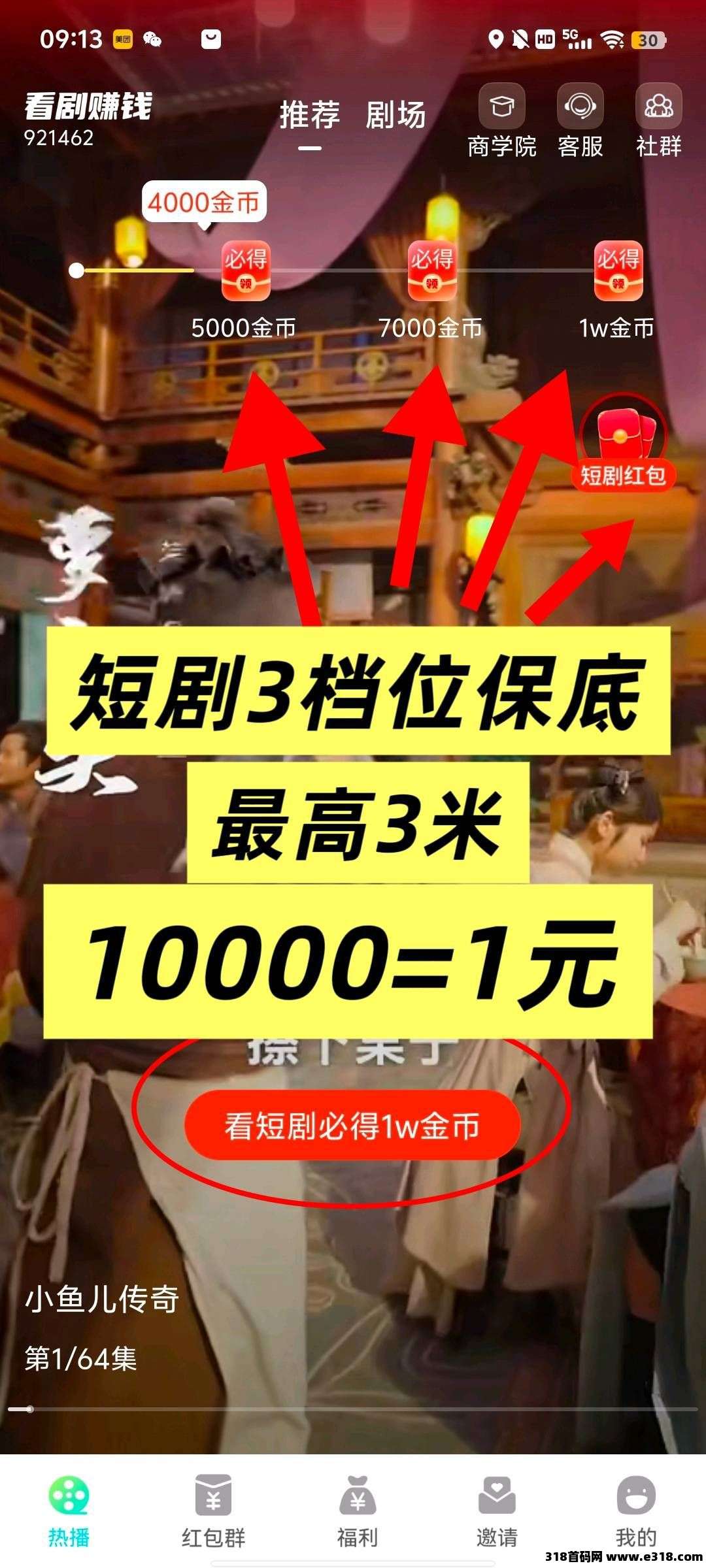 看短剧保底三个档位0.4-0.7-1-3顶包3