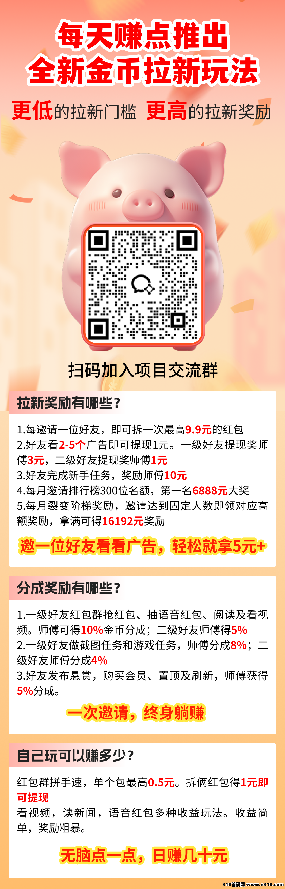 简单来说,邀请一个用户下载看两个广告进行体现,上级可以获得5块以上.