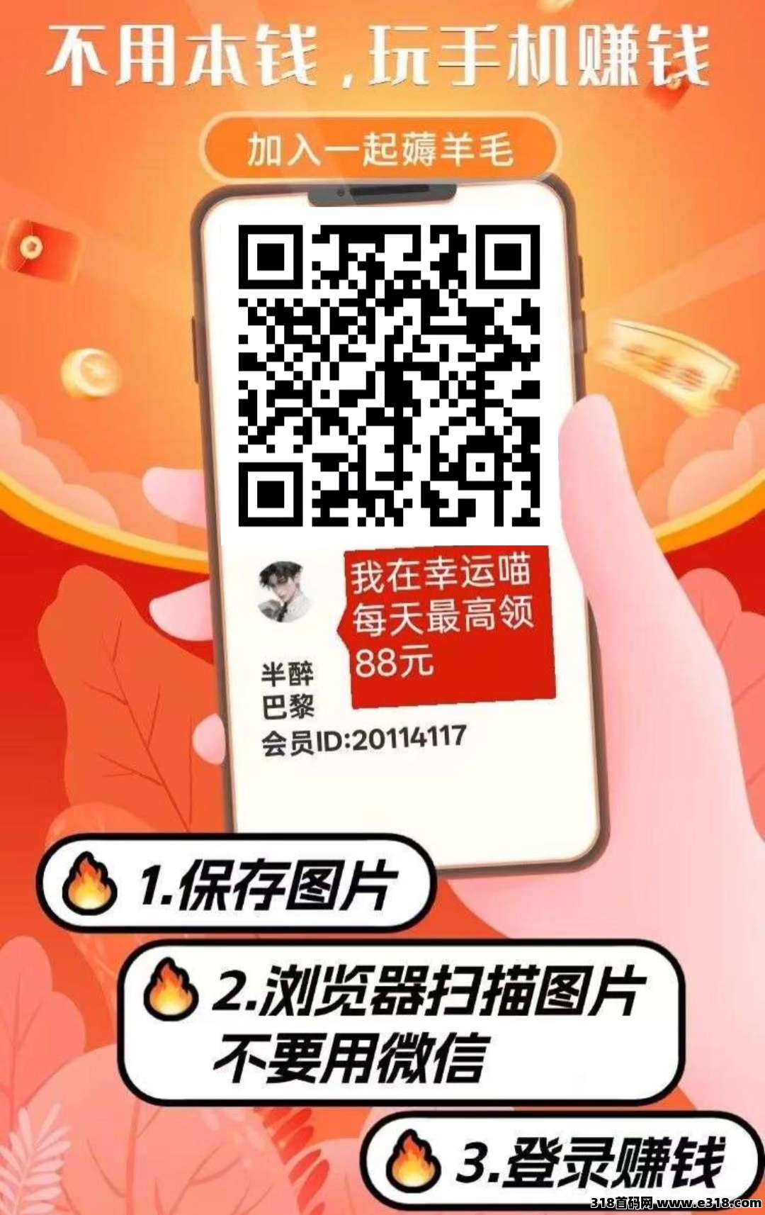 首码幸运喵,纯零撸看广告,不养机收益高,单机每天10-30+,免费送不养机玩法教程!