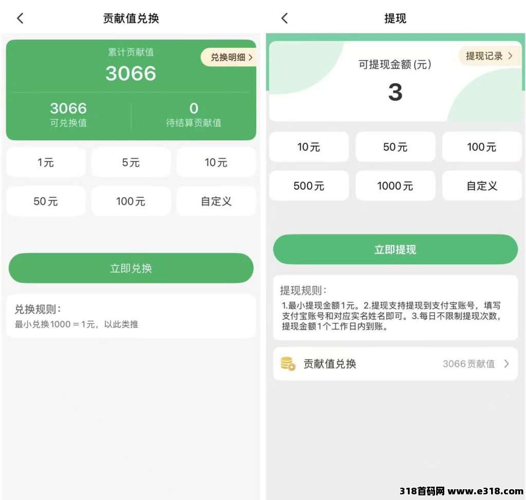 这里就是 贡献值兑换 比例 1000贡献值=1余额