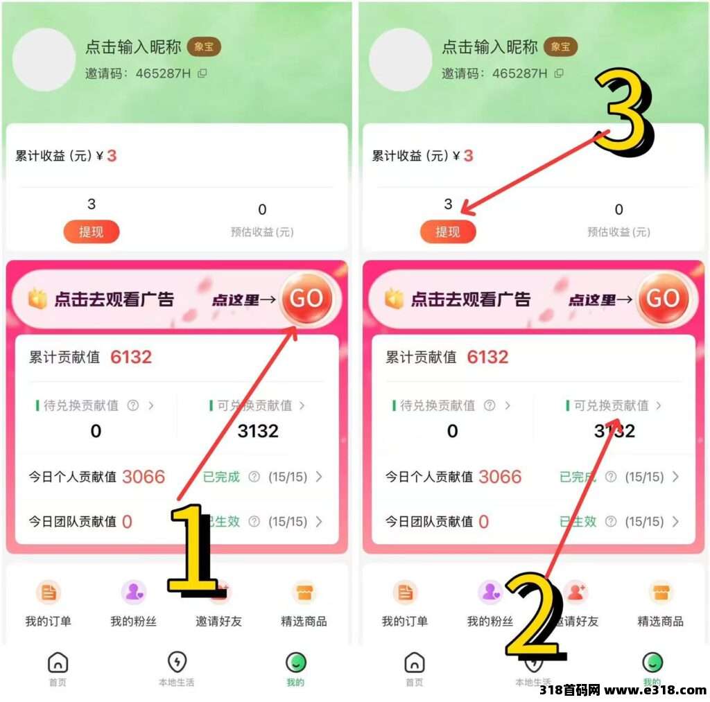 1:点击去看广告 (每天最低要看 15个 广告) (每天必须要看15个广告 才可以提现,不然提现不了)