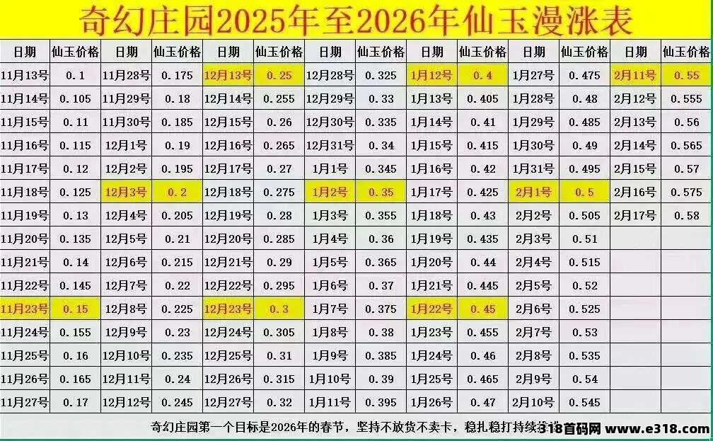 重点划重点 ——仙玉开启慢涨计划,躺赚加速度!仙玉初始定价 0.1,每天稳定上浮 0.05,相当于保底增值!后续官方还会围绕仙玉新增游戏、抽奖等玩法,和元宝板块形成双轮驱动,生态化布局让收益更稳、涨幅更高!