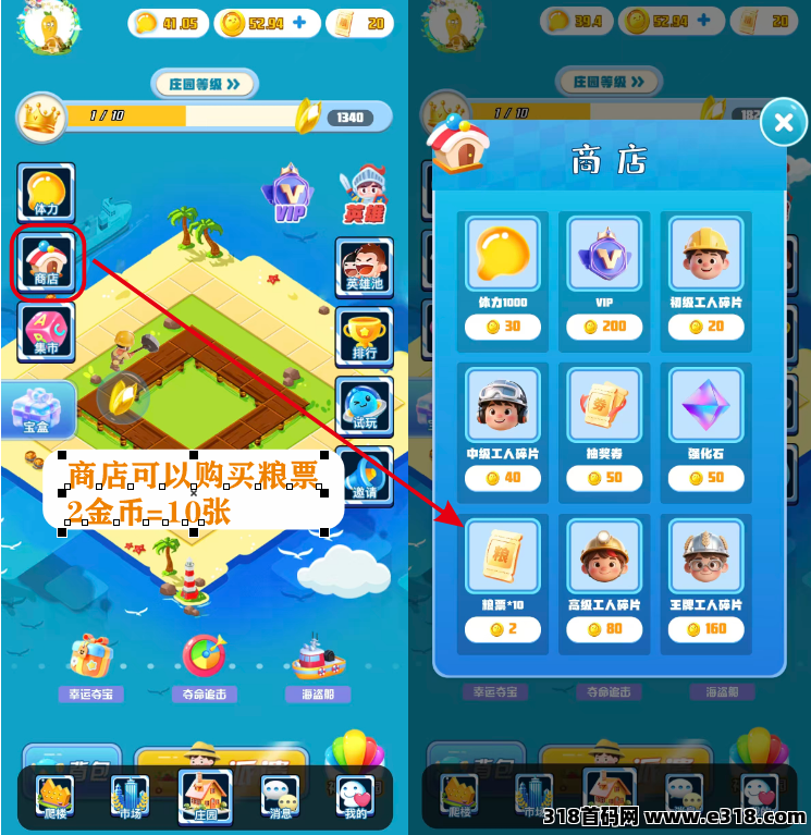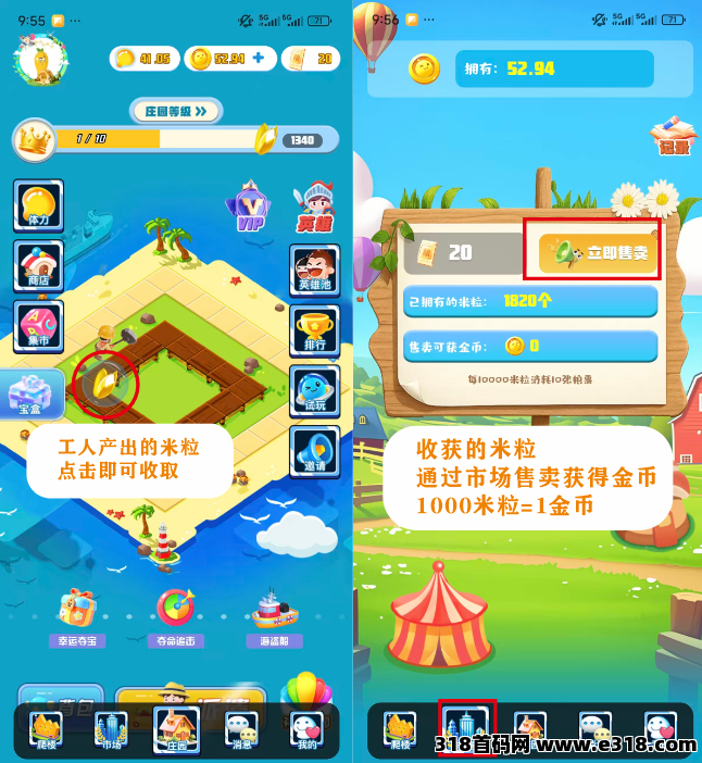 工人产出的 “米粒” 就是硬通货!10000 米粒 = 1 金币,攒够就能去市场卖出变现!重点提醒:每产出 1 万米粒仅需消耗 10 张粮票,粮票可在商店用 2 金币兑换,折算下来净赚 8 金币,稳赚不亏!
