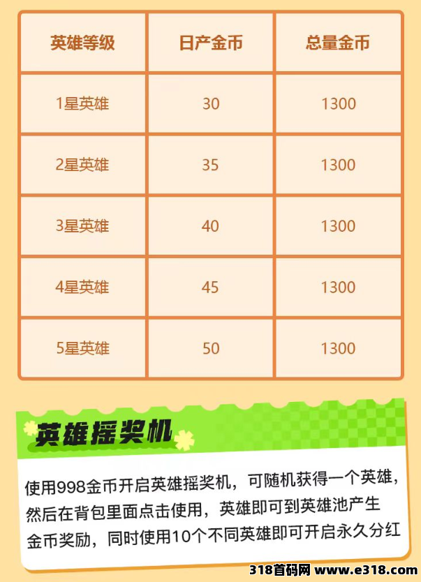 进阶玩家必冲 “英雄玩法”:英雄等级越高,每日产金币速度越快,搭配手续费减免,赚钱效率直接拉满!