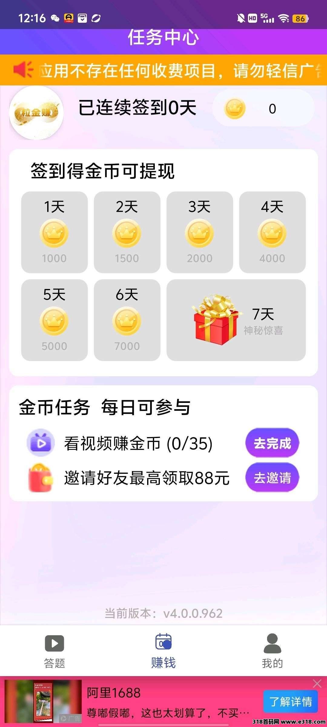 粒金赚,零撸广告赚,保底收益高,团队模式,邀请日入百米,顶包1w