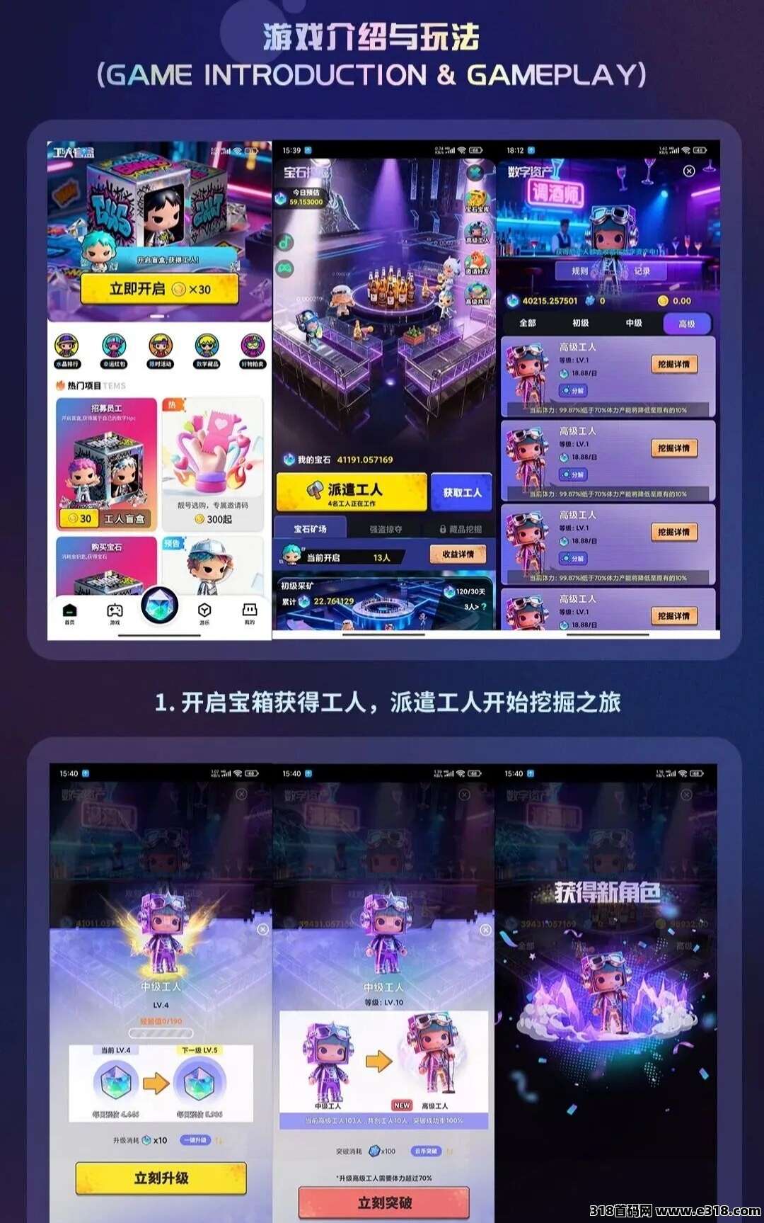 进阶玩法:玩家可通过升级工人提高收益,工人等级越高收益越高,同时消耗体力越多,大佬首选!