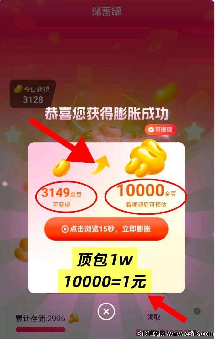 ①首页存豆看广告1000-10000金豆