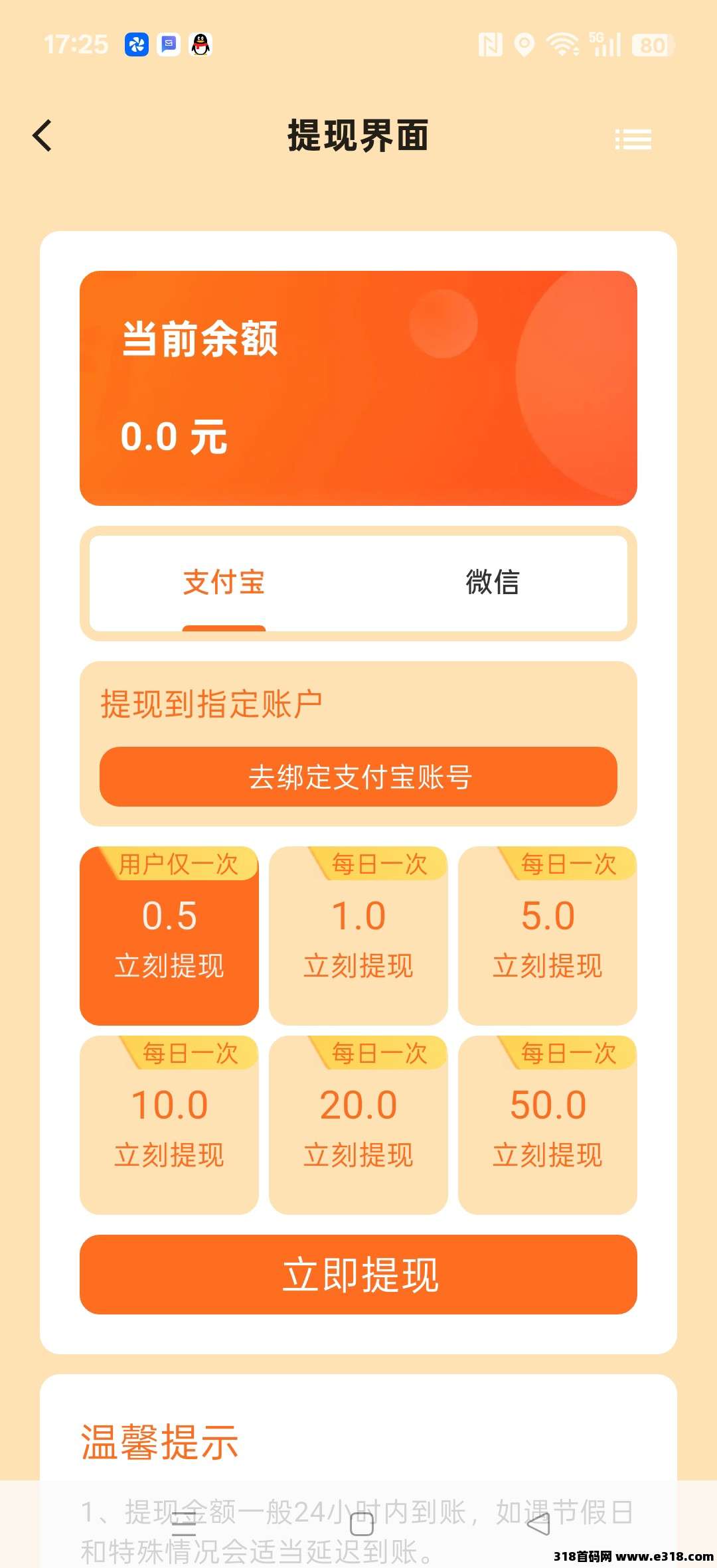 满0.5米提现,