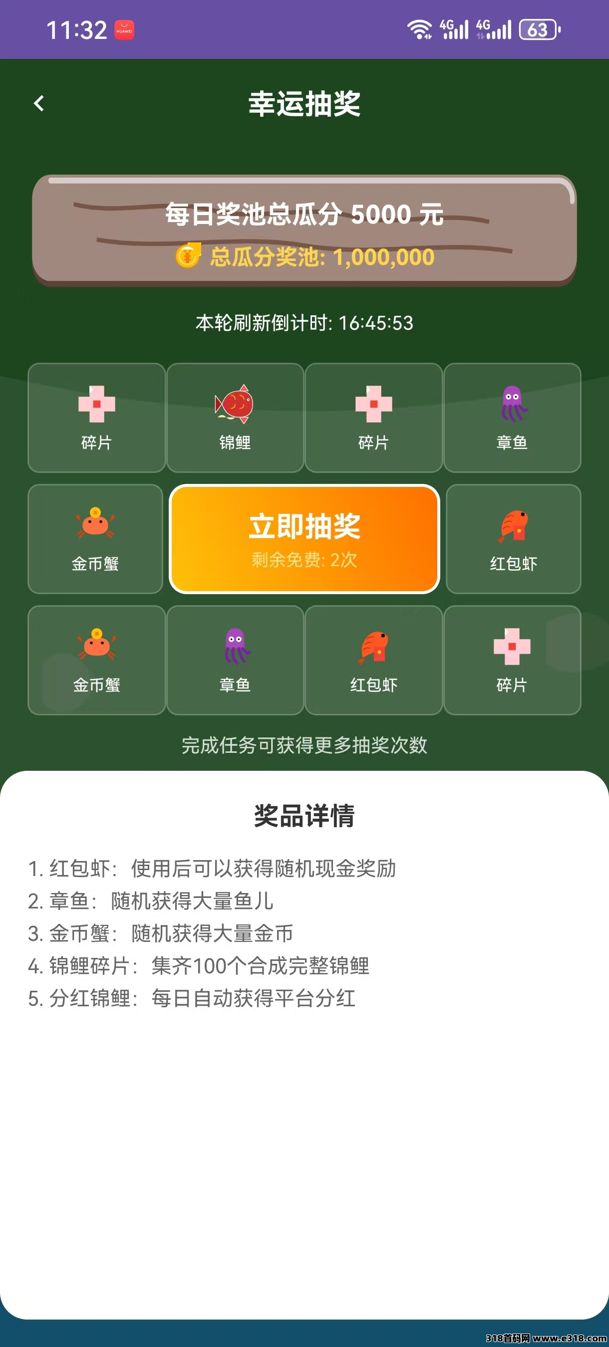 点击首页 “抽奖” 按钮进入,每天 2 次免费抽奖机会,奖品实用度拉满: