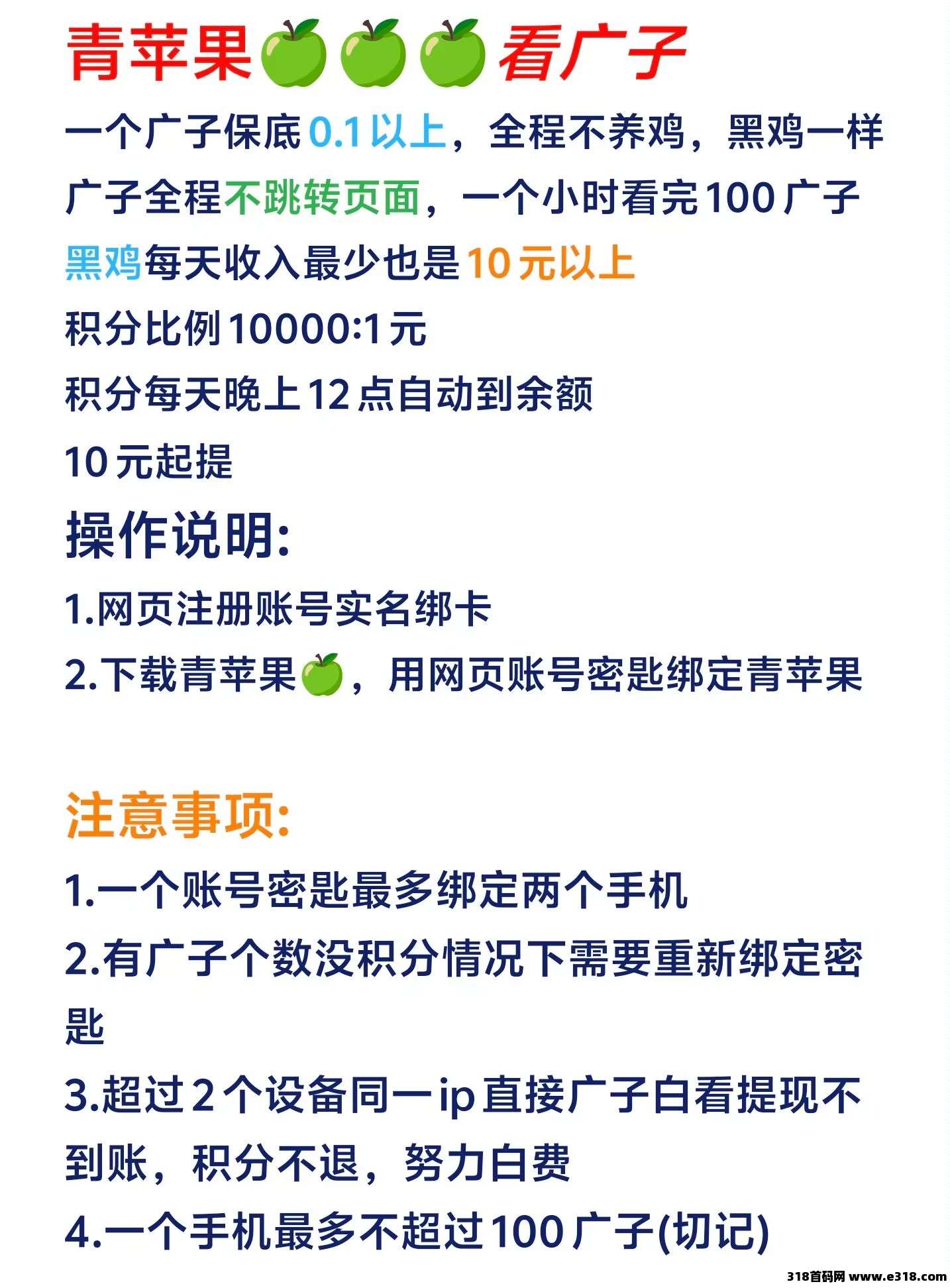 1、每天看广告上限100个,每个广告0.2米