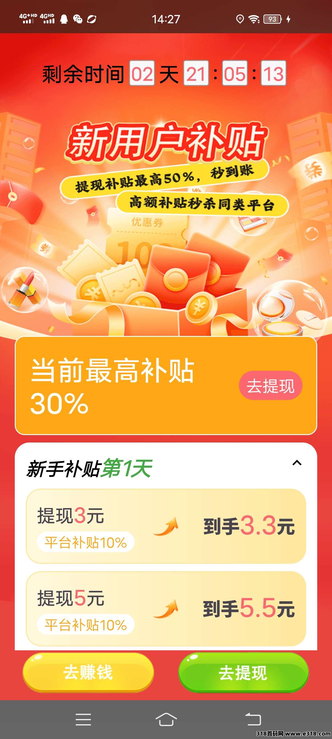 新人前3天补贴30%
