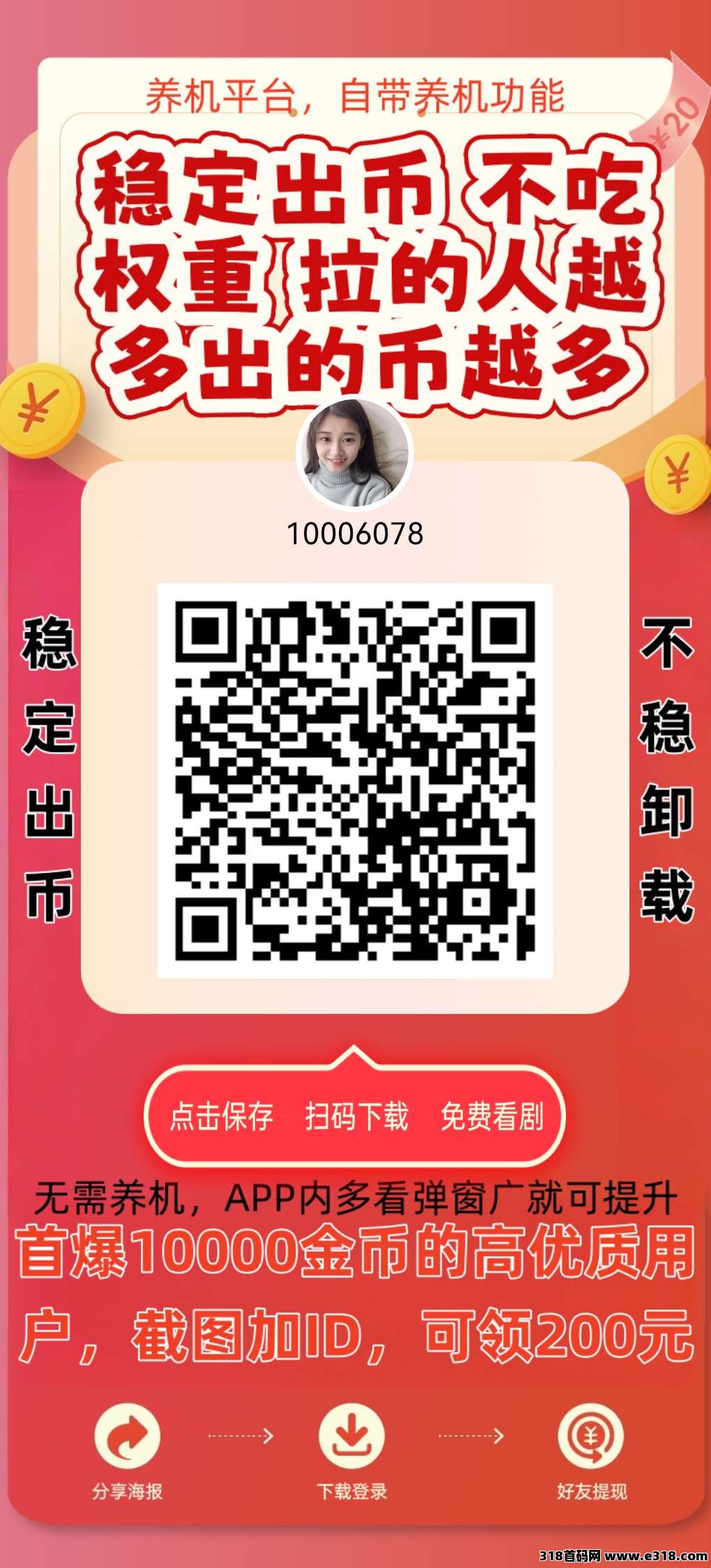 0撸,保底看广告,一毛多一个,解锁短剧。但是得间隔3-5分钟一个广告,要不没有金币。有时间的可以玩玩,不错
