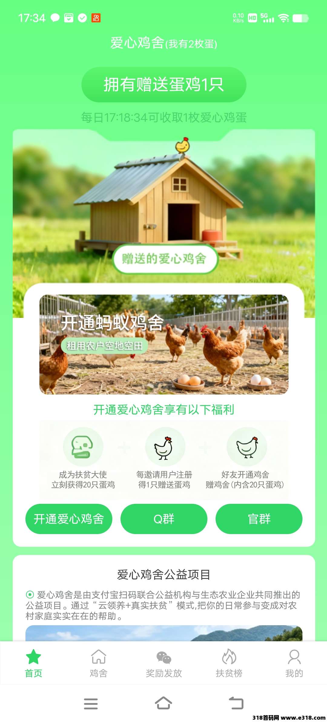 爱心鸡舍,每天免费领一枚鸡蛋 开通鸡舍每天收益20元