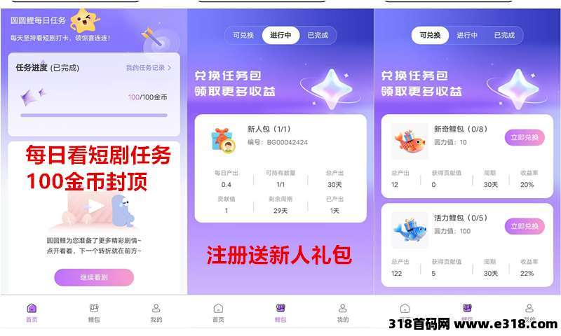 四、鲤包(注册就送新人任务包每天释放0.4个圆力)可复投更多包