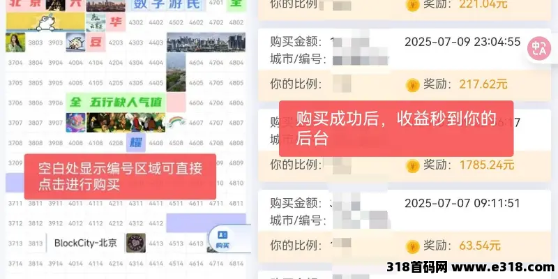 3. 将你的推广链接通过各种渠道进行宣传,用户选择心仪区块购买成功后收益即时到后台