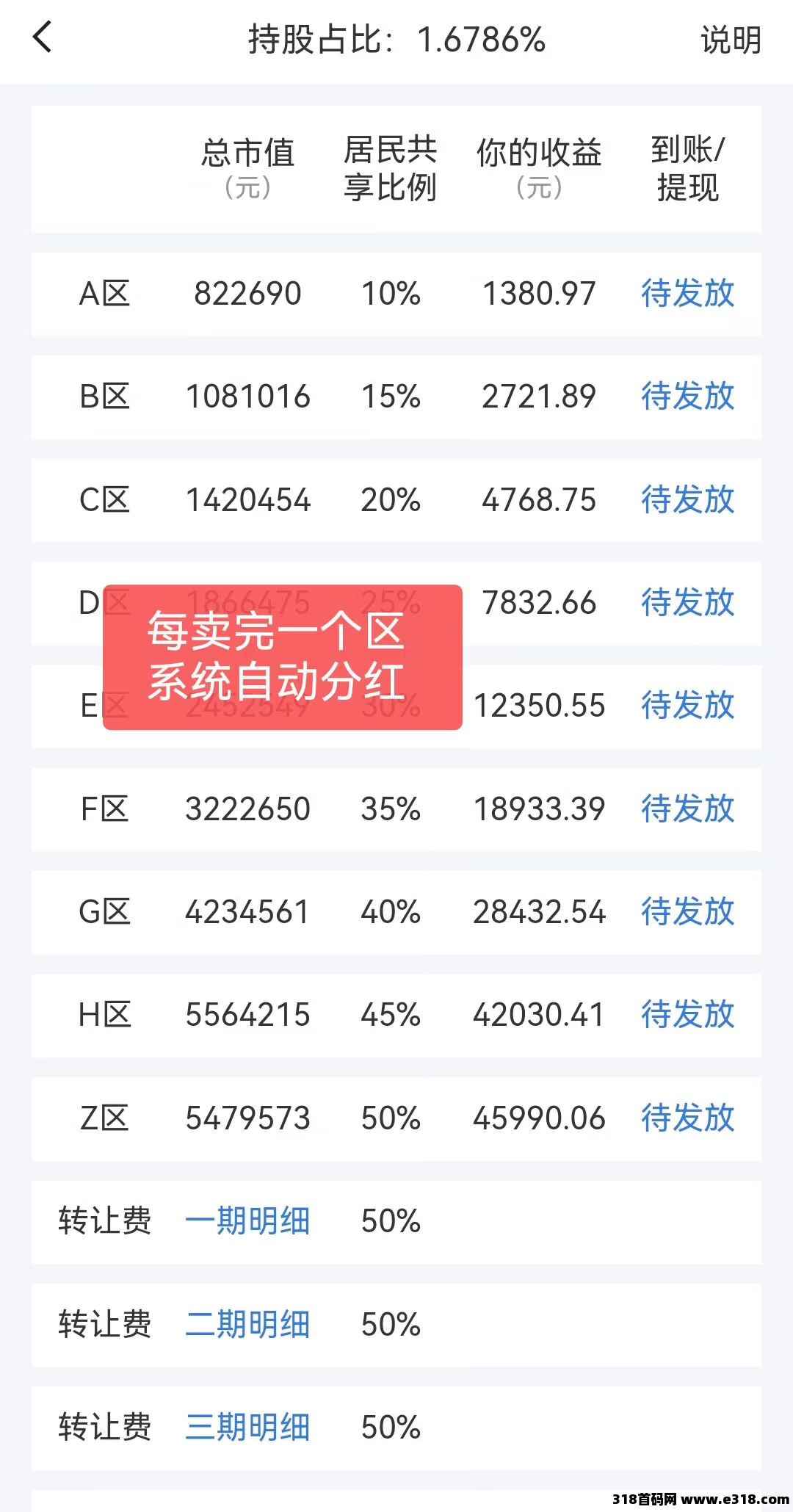 纯**赚收益的玩法:购买区块获得参与城市建设的资格--每日签到抢红包以及参与城市内发起的各种投票赚取人气值,单个小区块每个月产出大约50元。如果10个区块呢?100个区块呢?认为赚的太慢不想玩了,没有关系随时可以将自己的区块及相关数字资产转让出去。