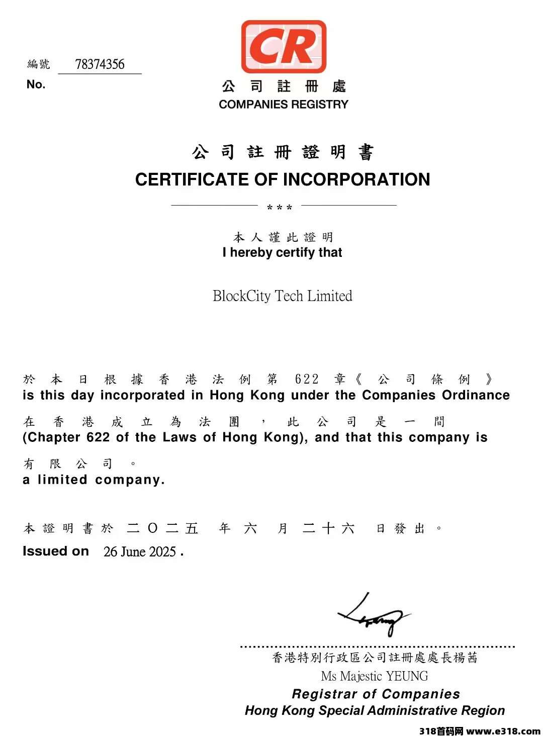 中国香港登记信息