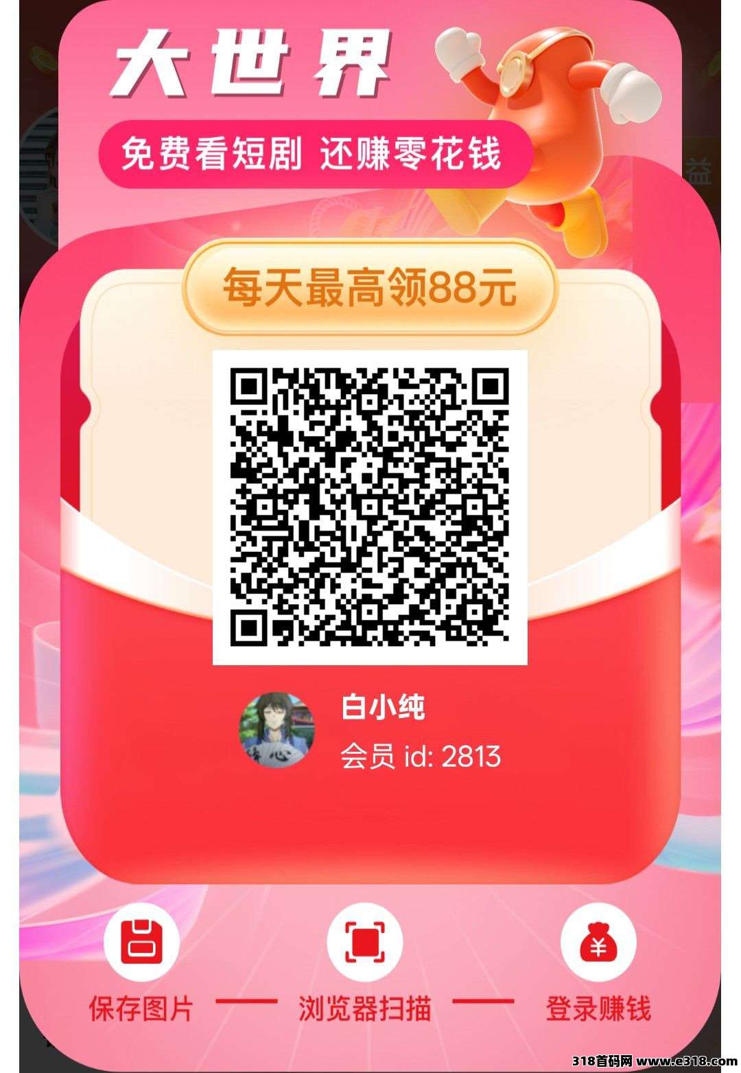 大世界短剧首码,零撸广告赚,保底收益高,放水中,不养机,团队模式,邀请日入过百米,拉新奖励,