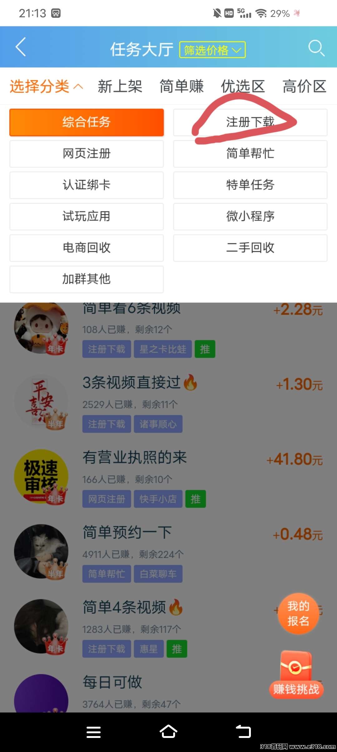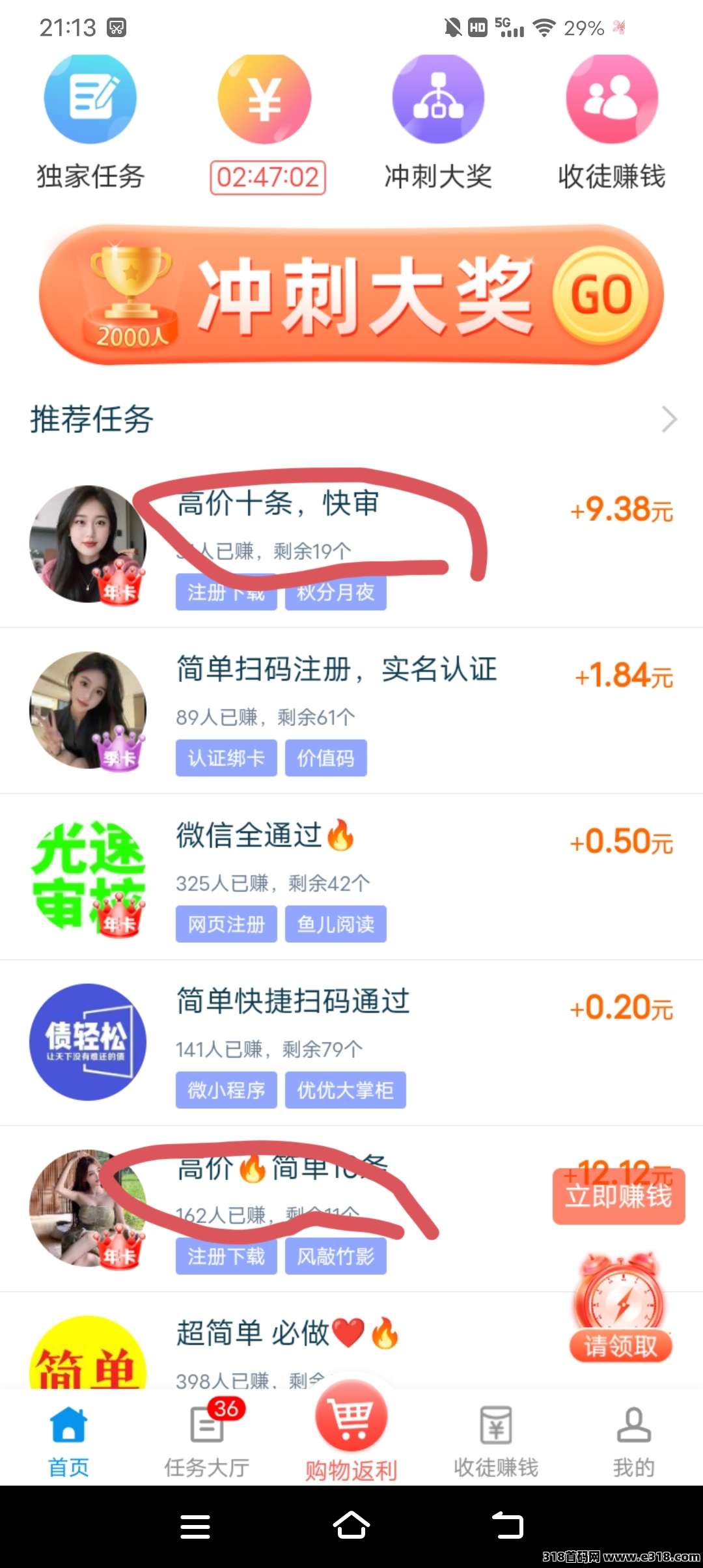 最近好做的任务非常多,我做了几天提现大几百,捡这些好做的,一小时几十块钱,圈起来的简单半小时十几块钱