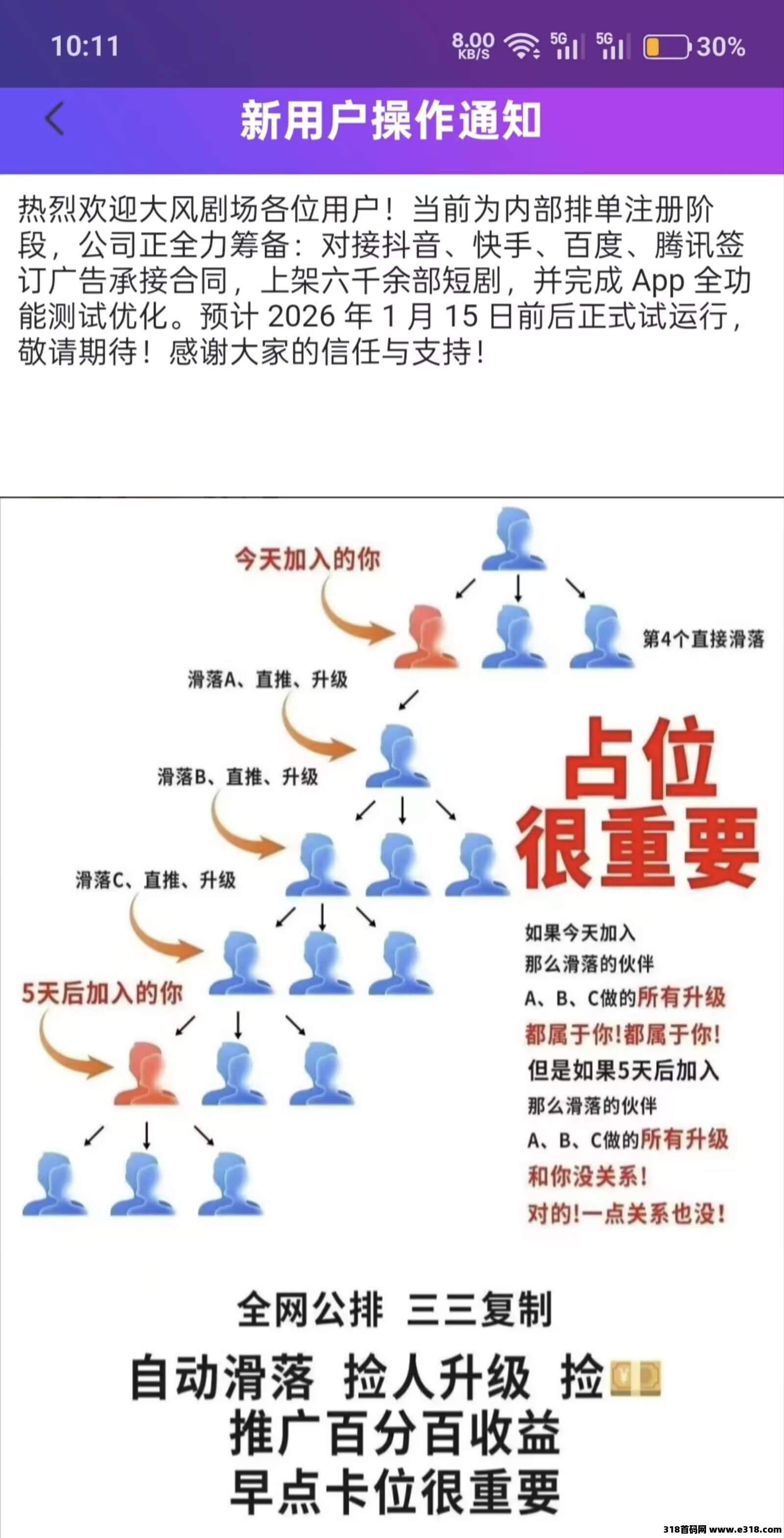 首码大风剧场,2026年零撸之王,零撸广告全网公排自动滑落,不养机保底收益高,日赚高达300米左右!
