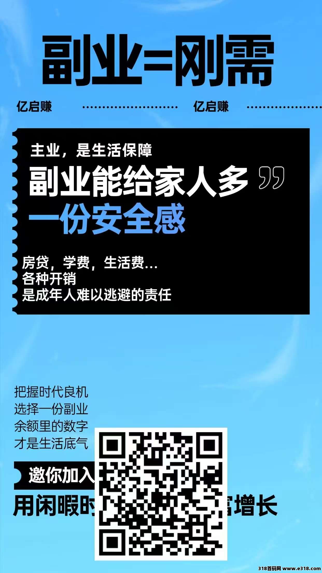 亿启赚平台对接国内一手广告资源,和字节跳动,百度,腾讯,快手直接合作,帮助用户通过展示、点击和浏览广告实现变现;